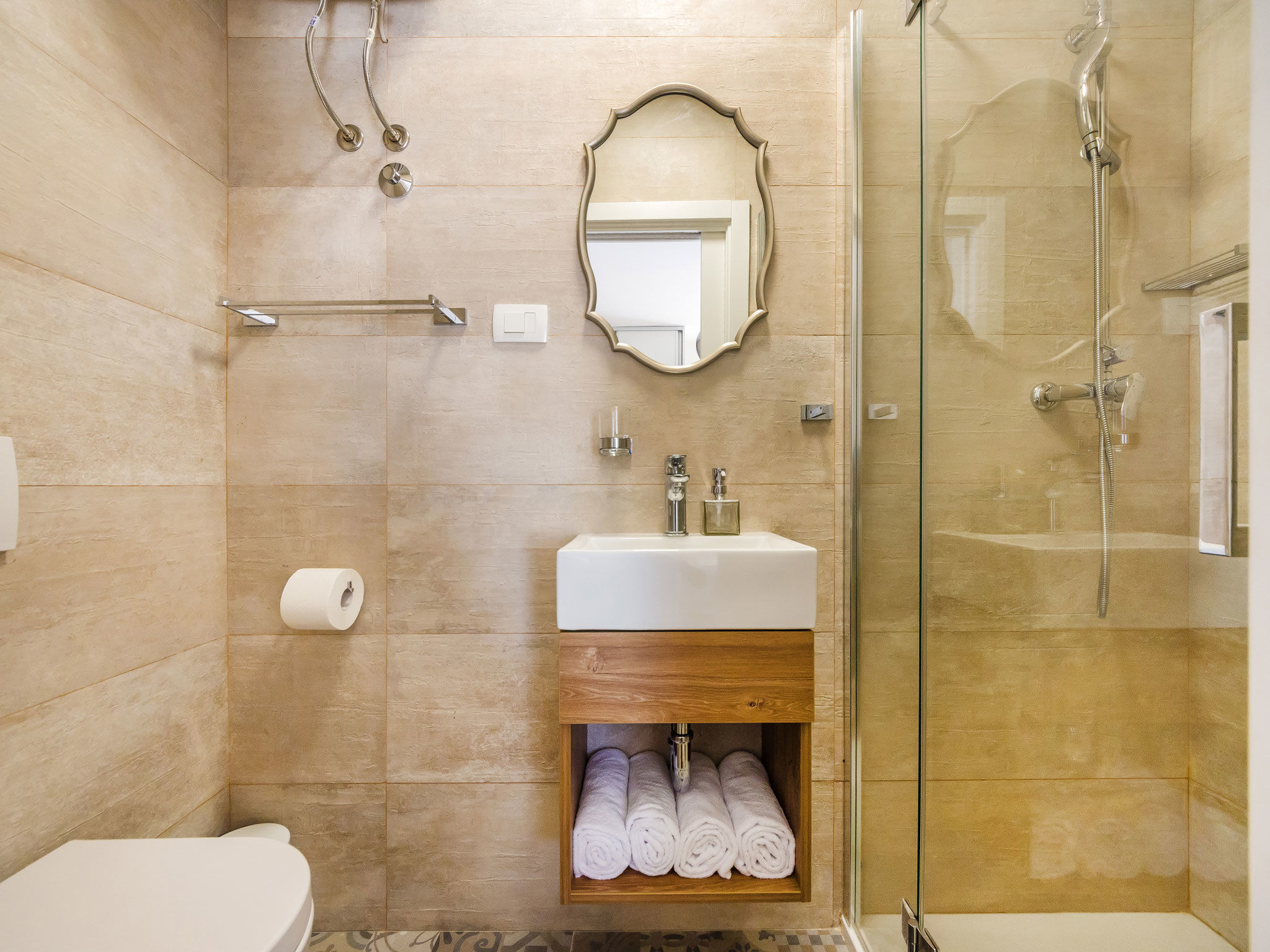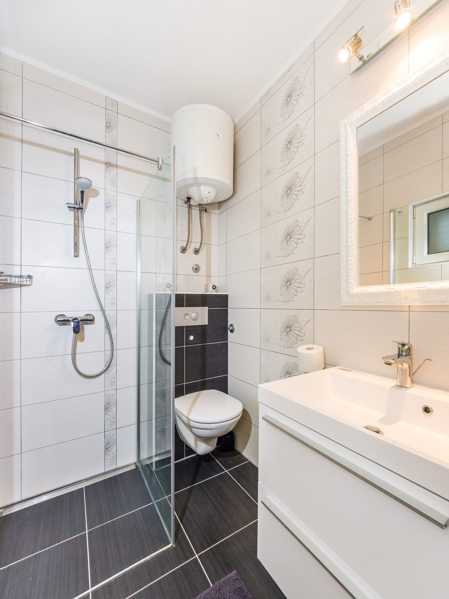 - Warmwasser zum Duschen: Im Bad