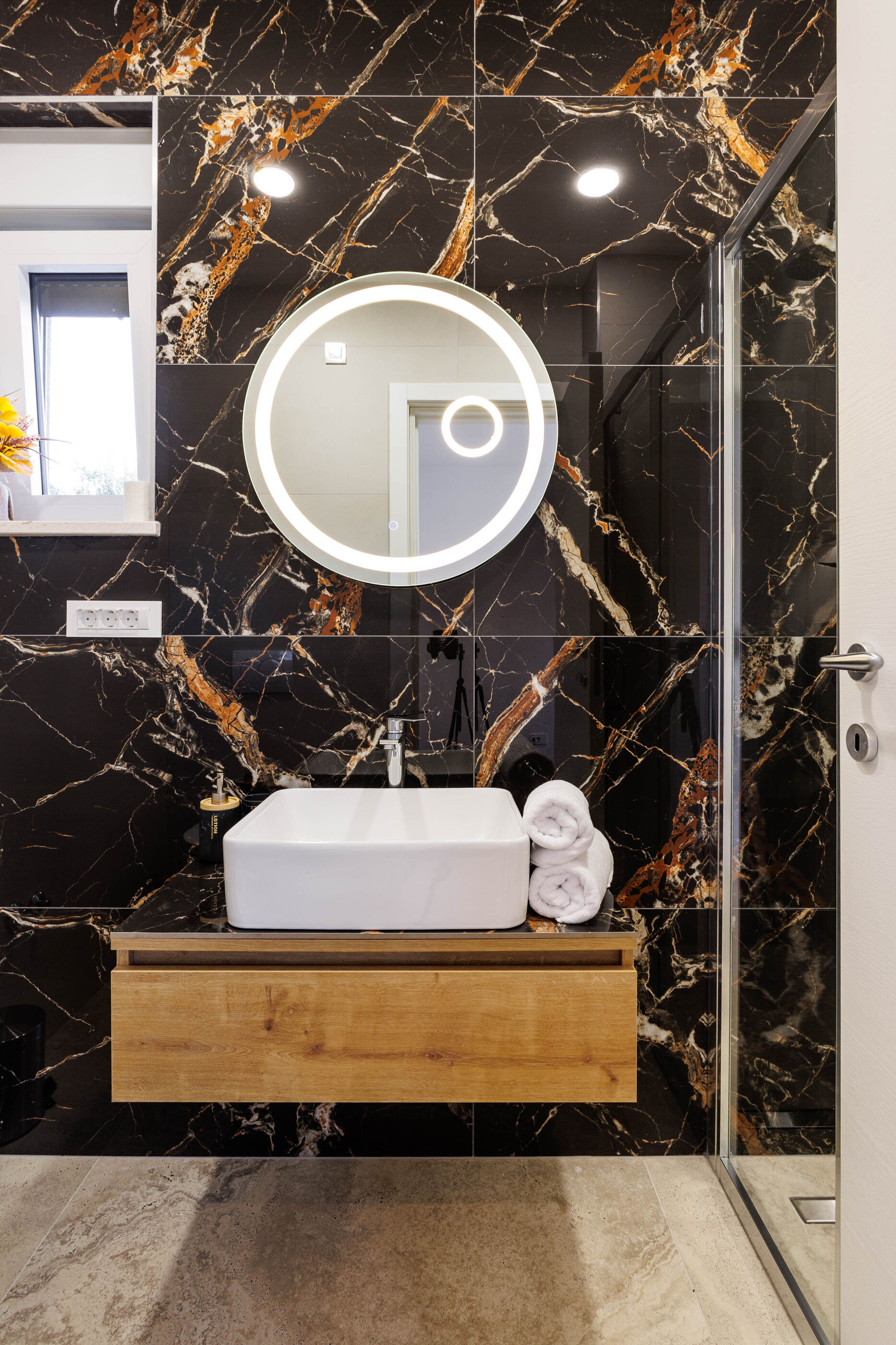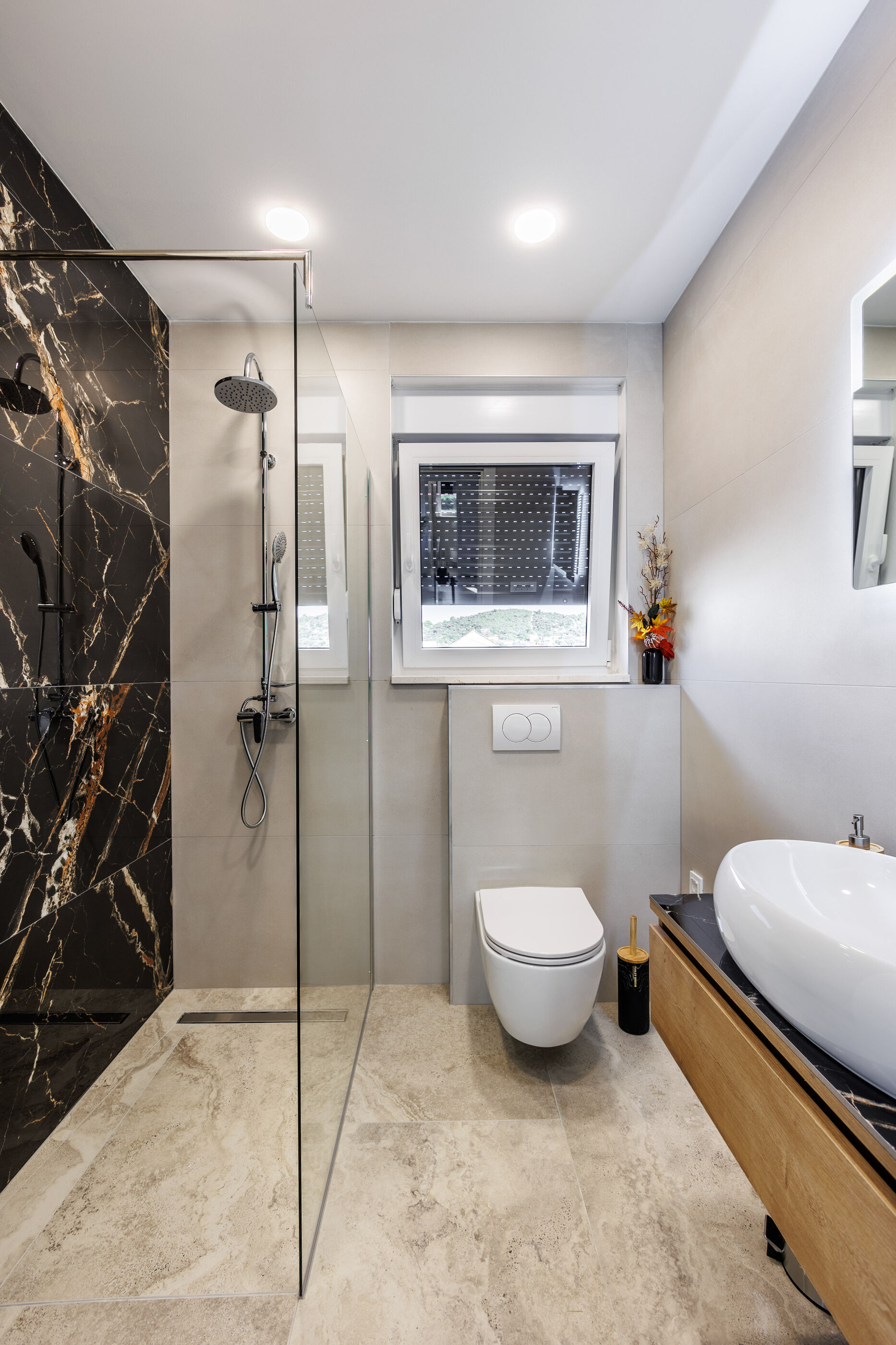 - Warmwasser zum Duschen: Im Bad