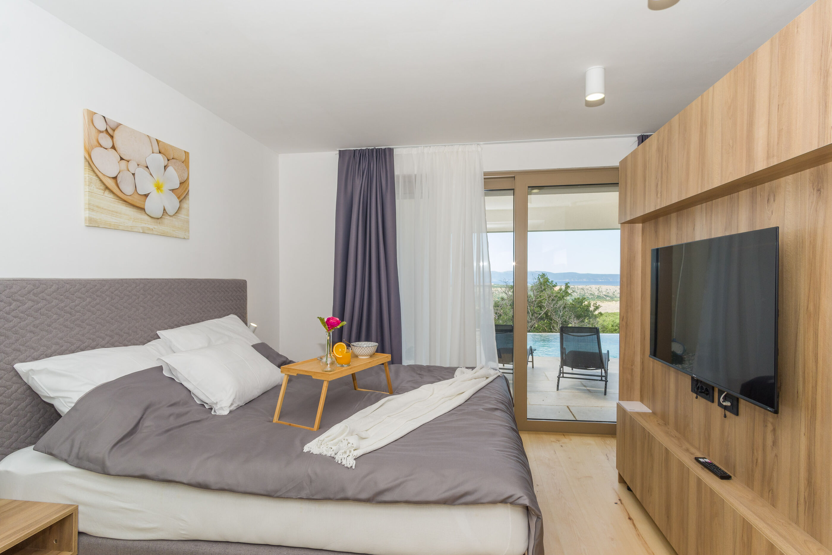 Genießen Sie kristallklares Meer und fangen Sie lange Sonnenuntergänge am Fels und Kiesstrand, größere Steine mit betonierten Liegeflächen Strand 2500 m entfernt. Für diejenigen die Privatsphäre bevorzugen, tauchen Sie in den Swimmingpool im Freien ein & tanken Sie den ganzen Tag Sonne.