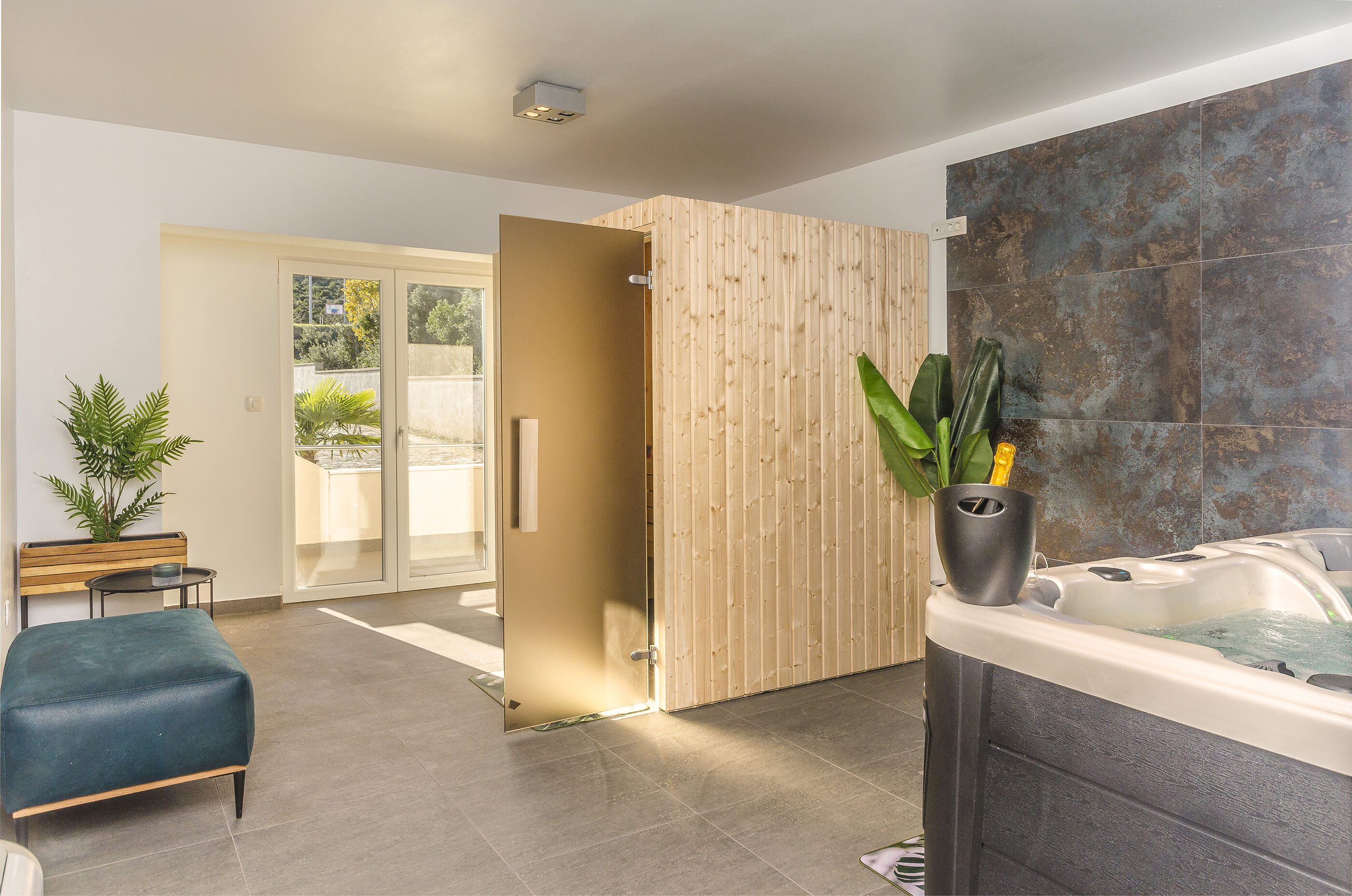 Villa Julija ist eine neue moderne Villa in einem kleinen Dorf Grabovci, nur 10 km vom berühmten Touristenziel Vodice entfernt. In einer ruhigen Umgebung können Sie am privaten Pool entspannen und Sonne und Ruhe genießen. Sie können Ihre Familie überraschen, indem Sie in der Außenküche ein ausgezeichnetes traditionelles Essen zubereiten. Sie haben einen privaten Whirlpool und eine Sauna.