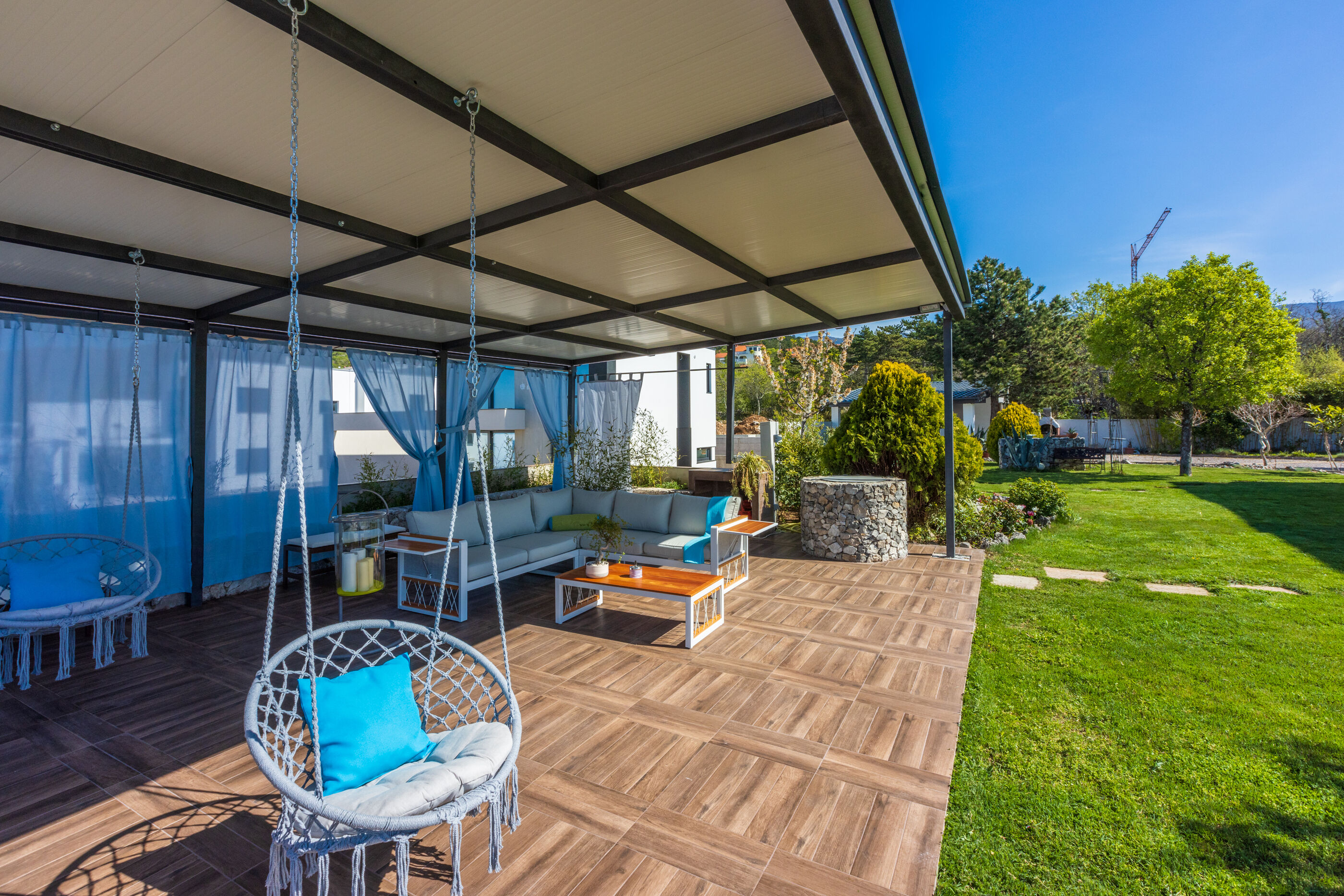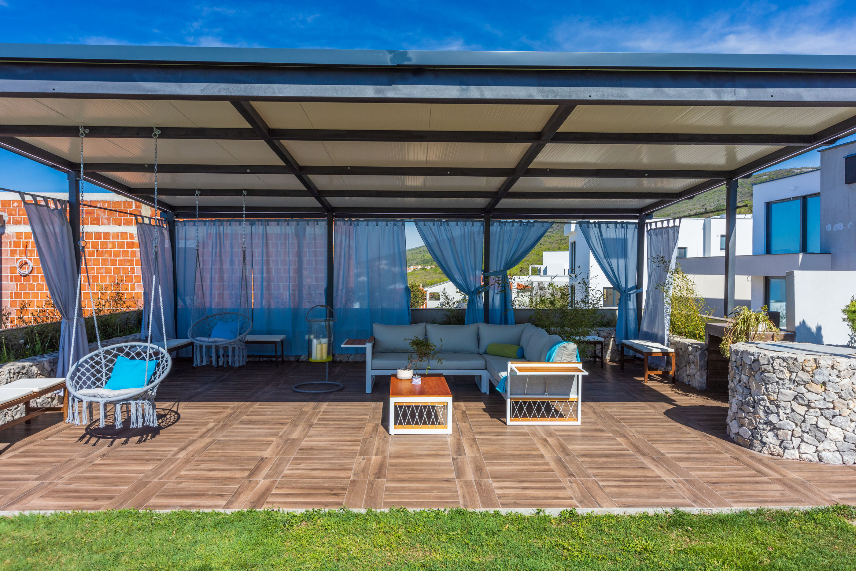 Die schöne überdachte Sitzlounge bietet viel Platz zum Chillen, Lesen, Relaxen......