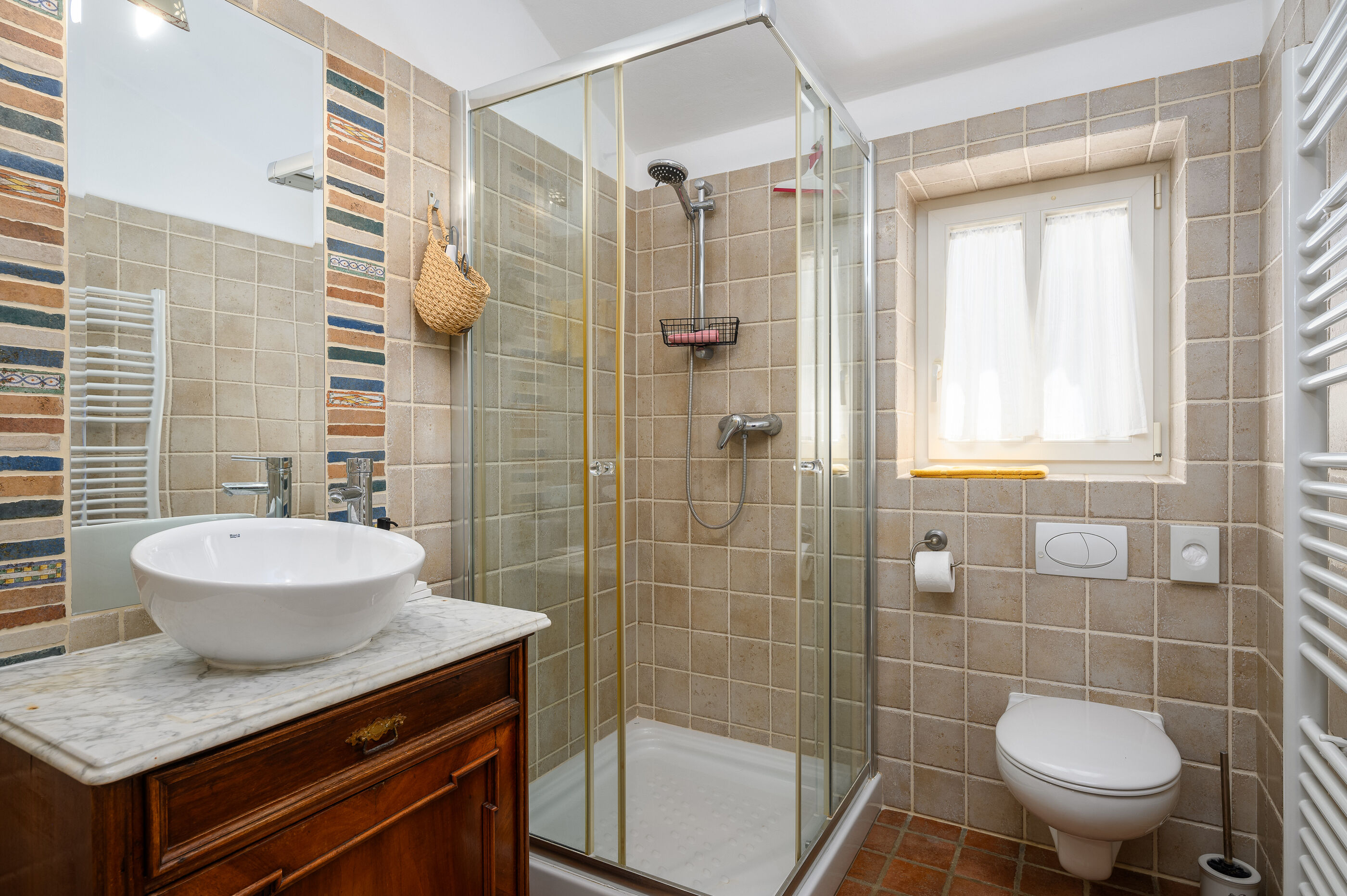 - Warmwasser zum Duschen: Im Bad