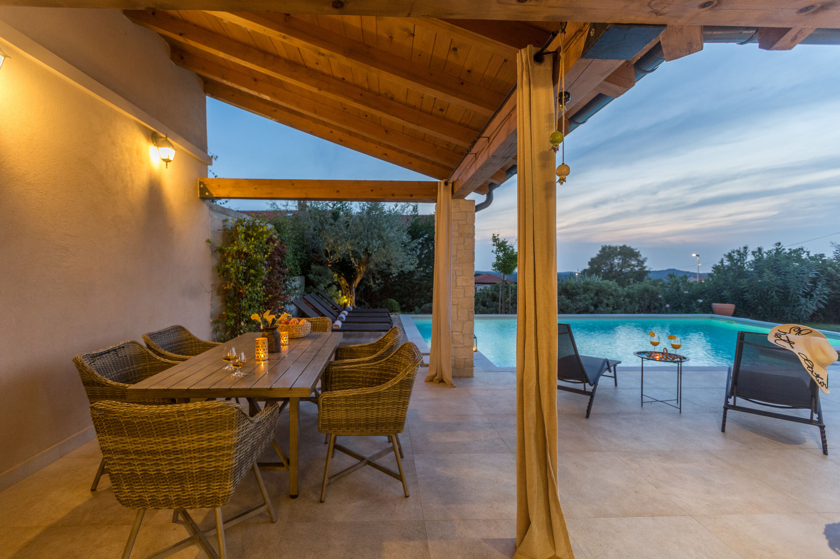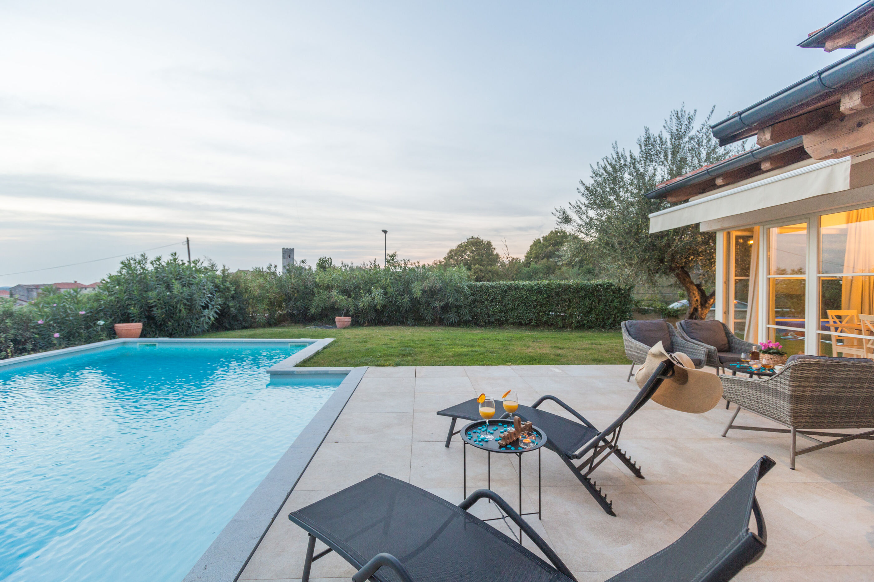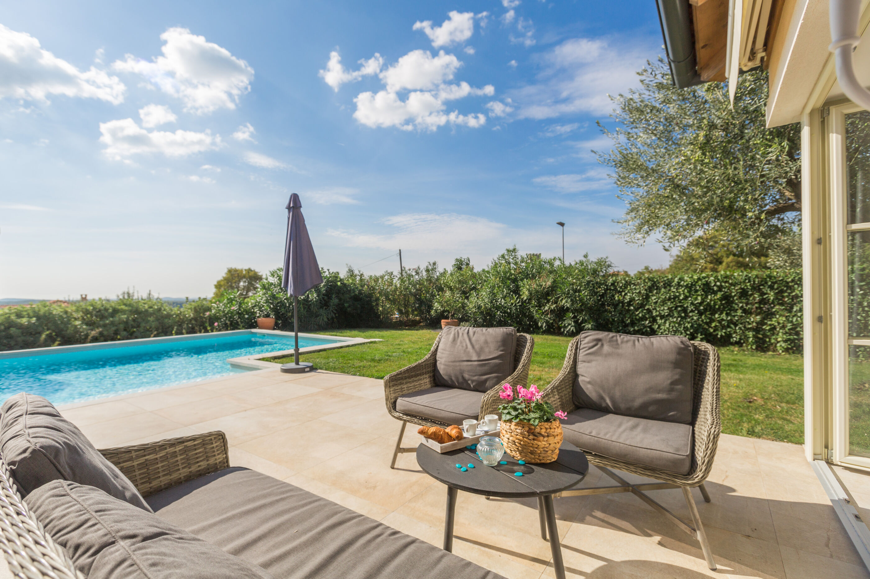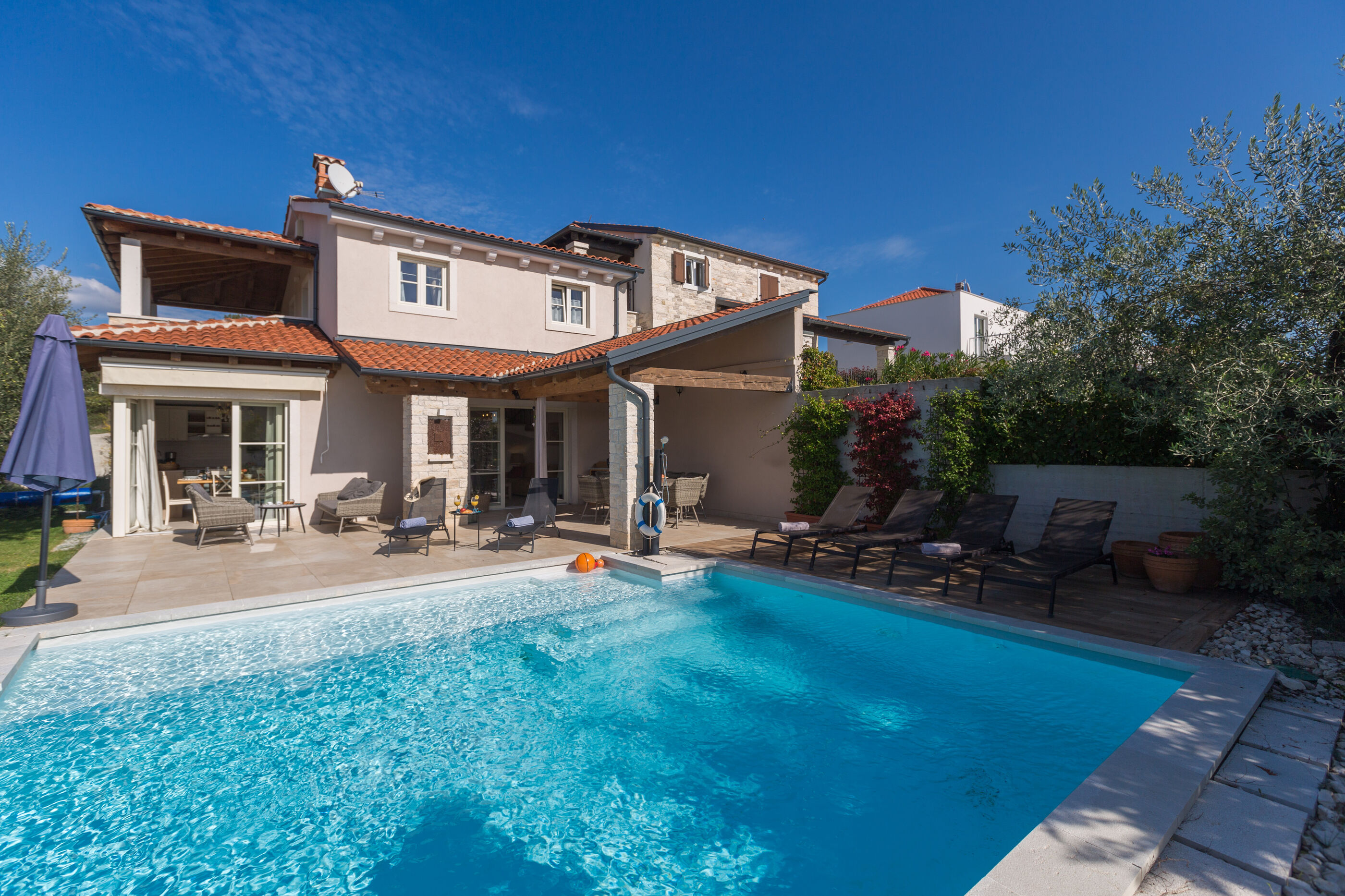 Wir erwarten Sie in der Unterkunft Nar s bazenom i predivnim panoramskim pogledom, ein wunderbarer Ort um zu entspannen Sveti Lovreč, ideal für 6 Gäste.