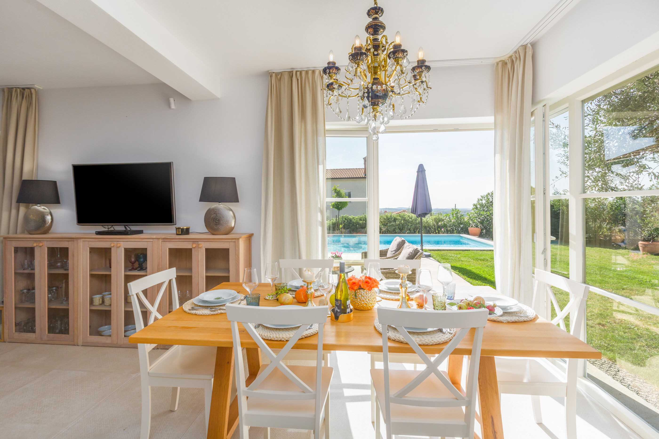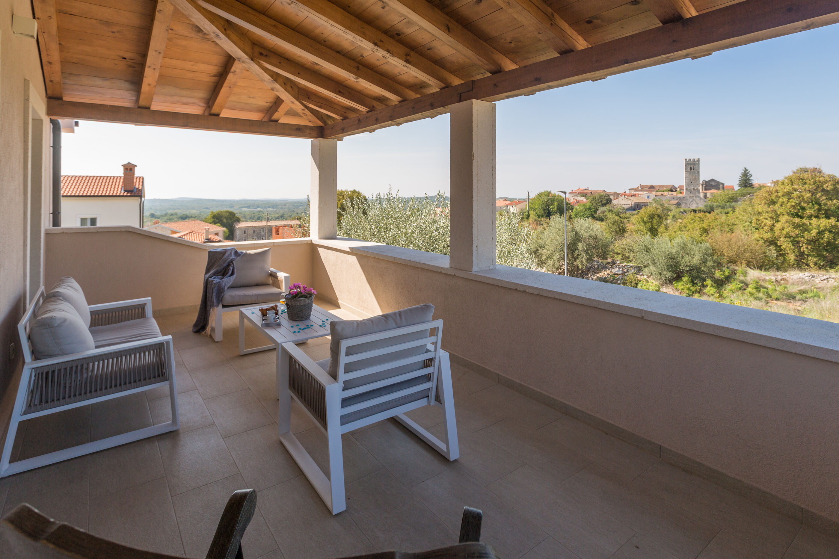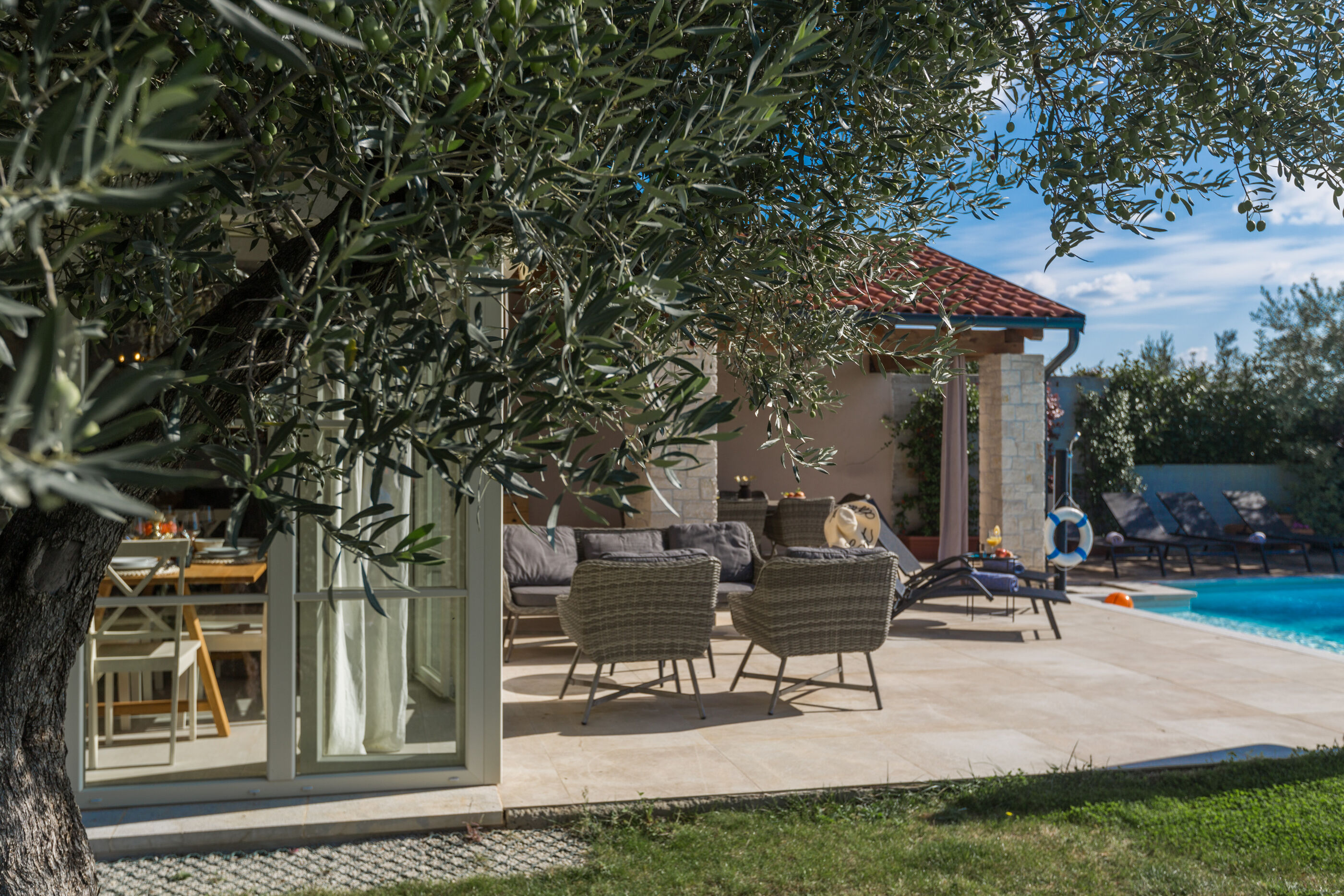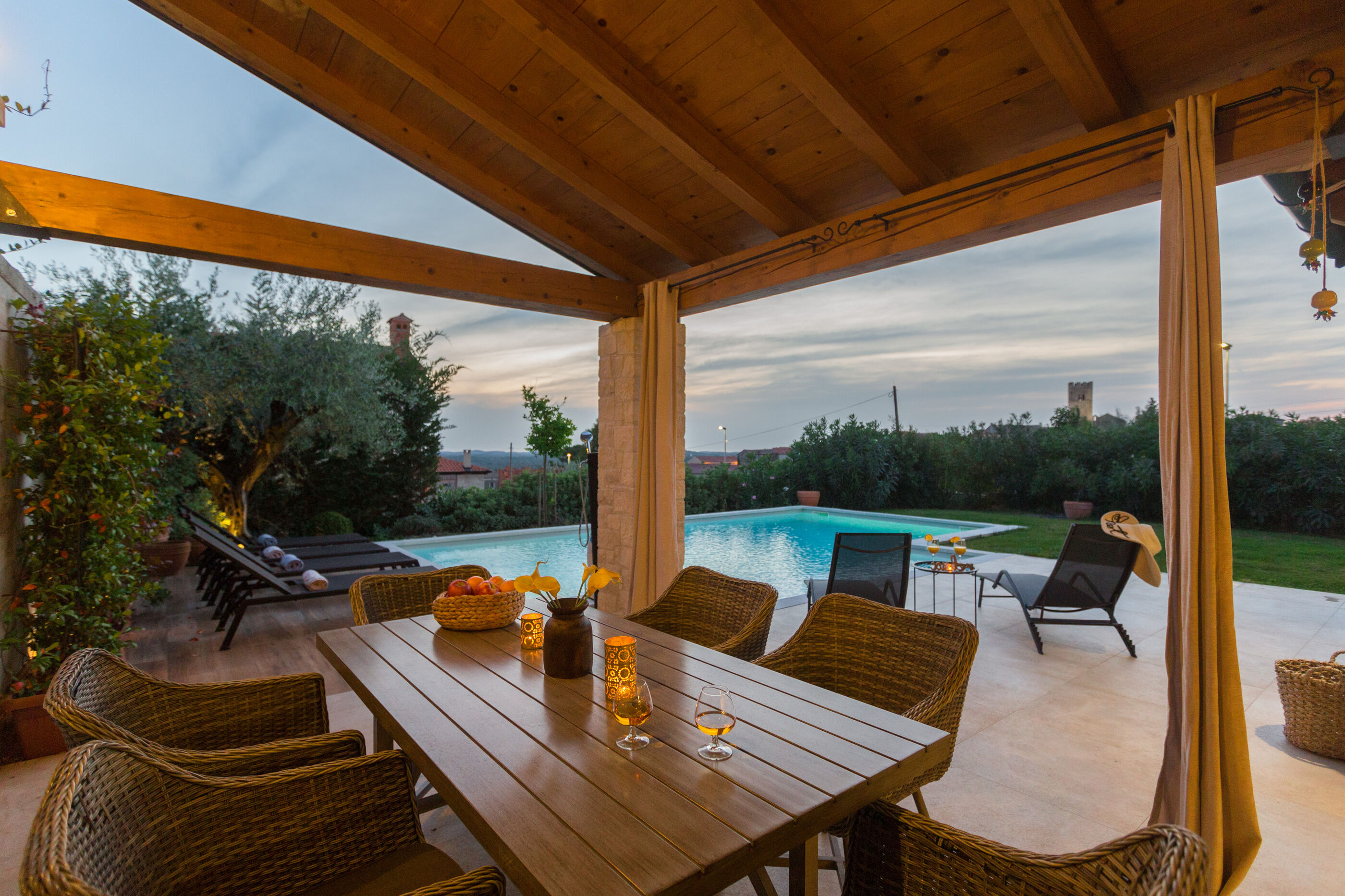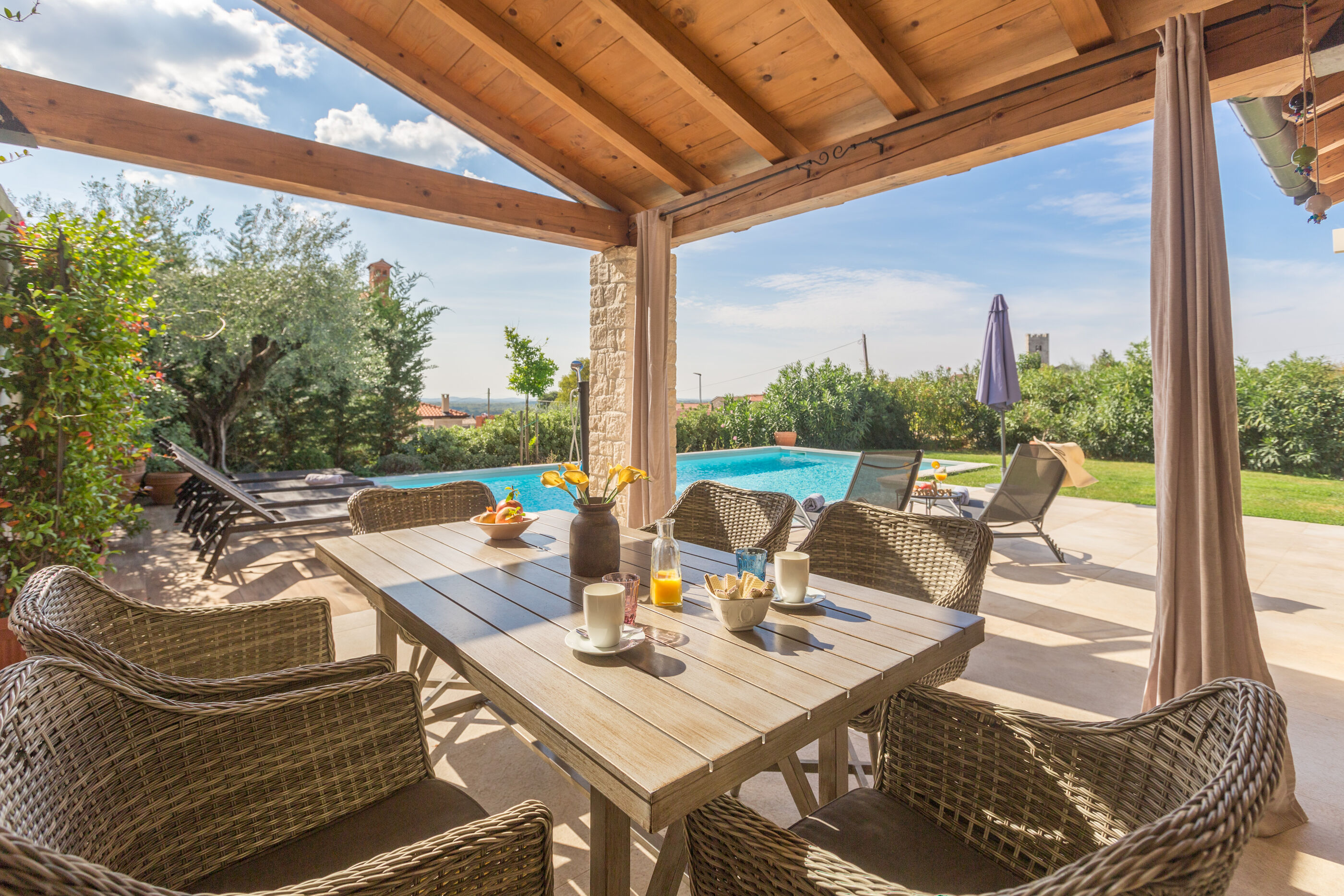 Wir erwarten Sie in der Unterkunft Nar s bazenom i predivnim panoramskim pogledom, ein wunderbarer Ort um zu entspannen Sveti Lovreč, ideal für 6 Gäste.