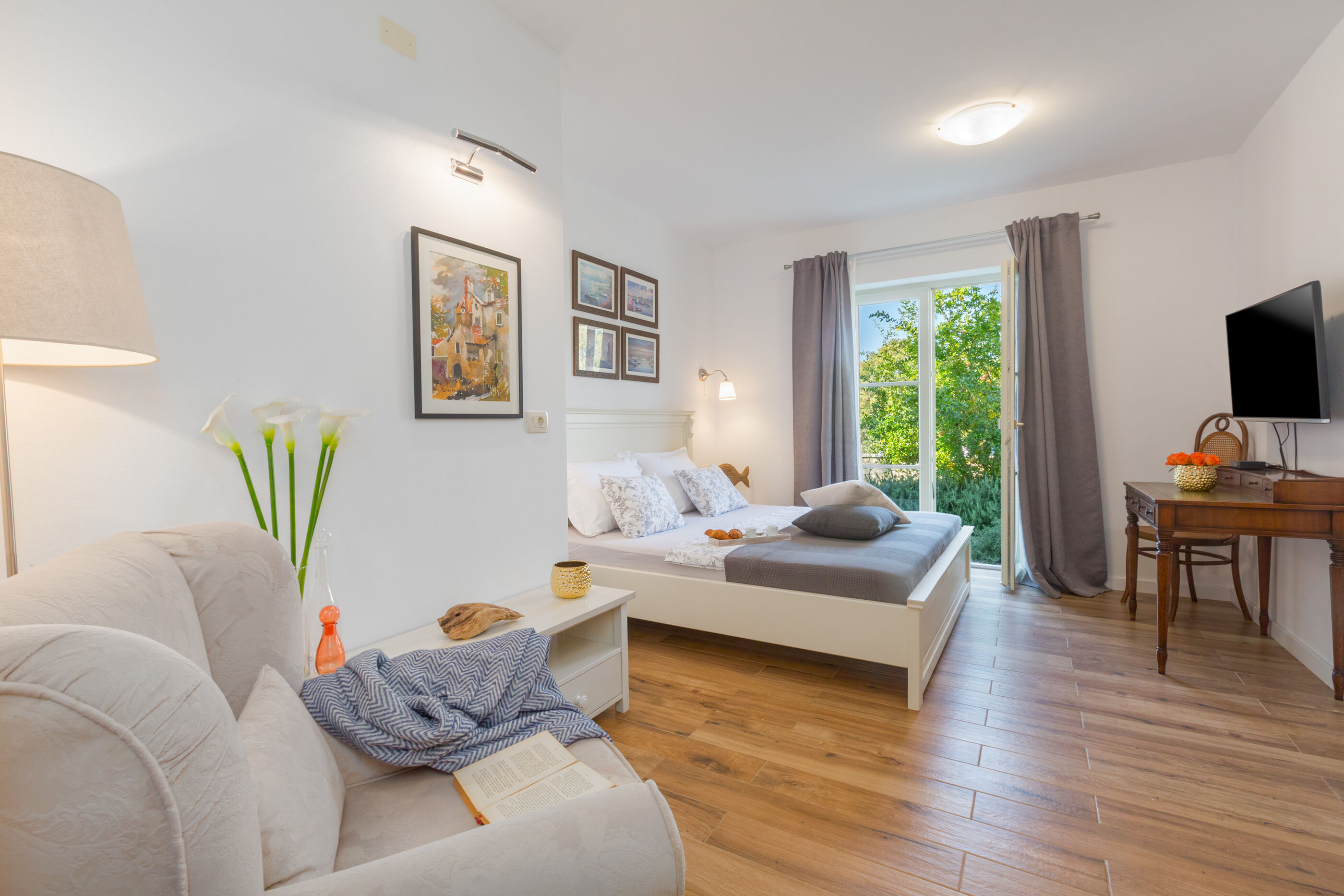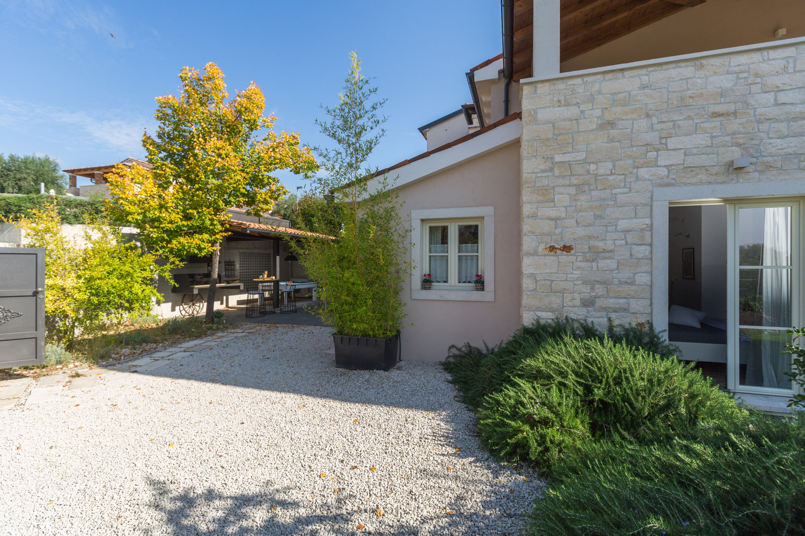 Genießen Sie kristallklares Meer und fangen Sie lange Sonnenuntergänge am Fels und Kiesstrand, größere Steine mit betonierten Liegeflächen Strand 14000 m entfernt. Für diejenigen die Privatsphäre bevorzugen, tauchen Sie in den Swimmingpool im Freien ein & tanken Sie den ganzen Tag Sonne.