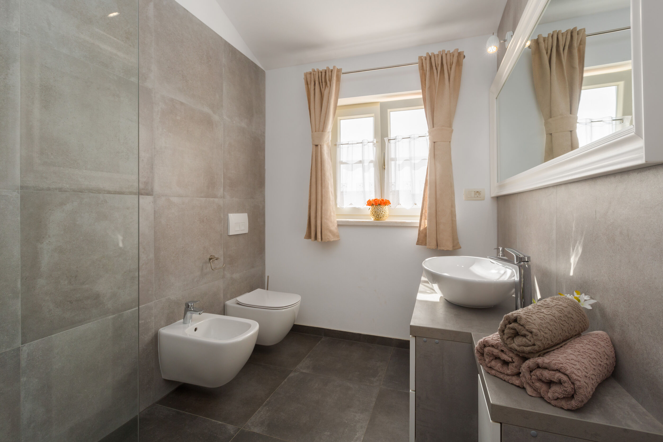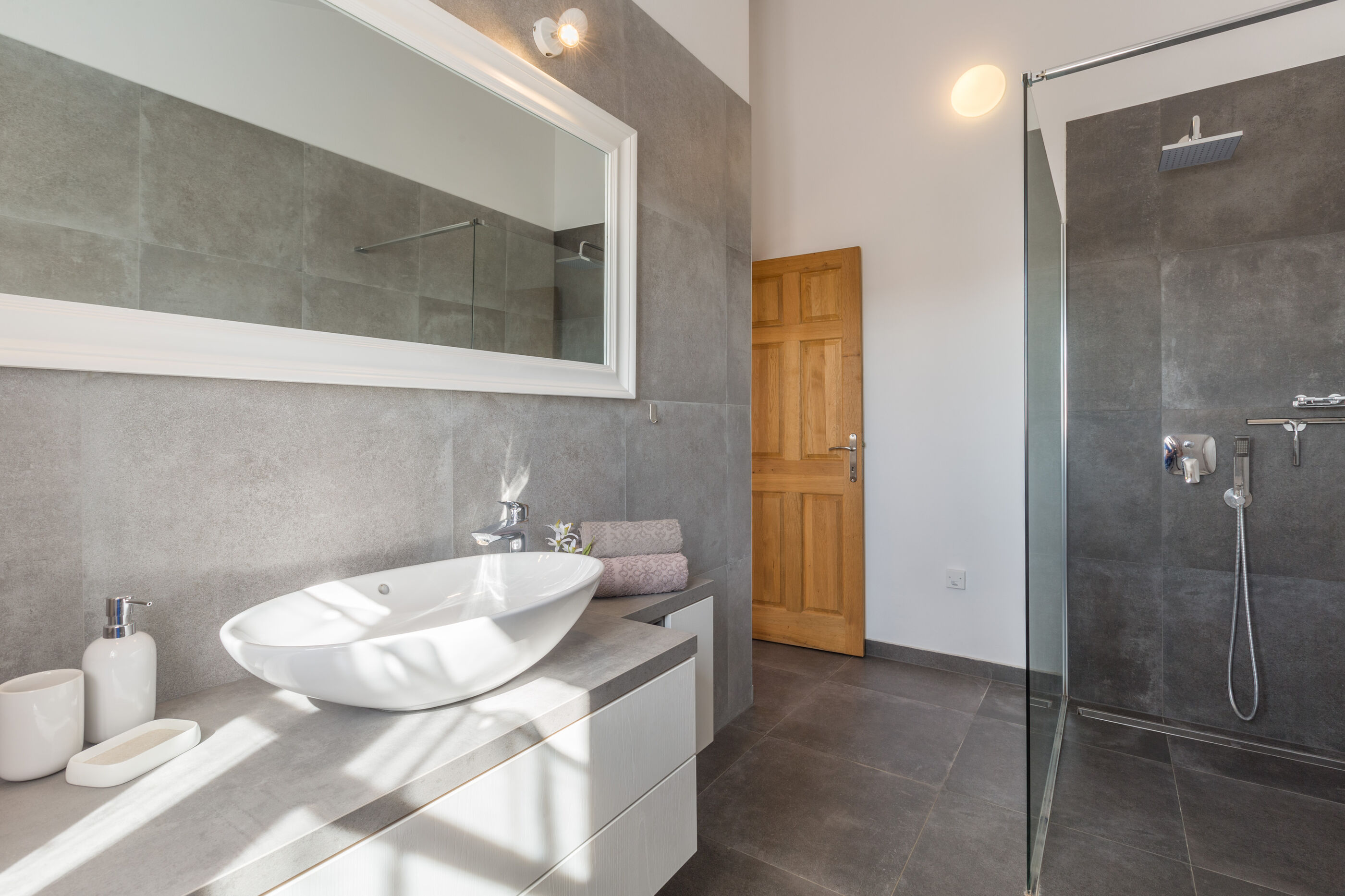 - Warmwasser zum Duschen: Im Bad