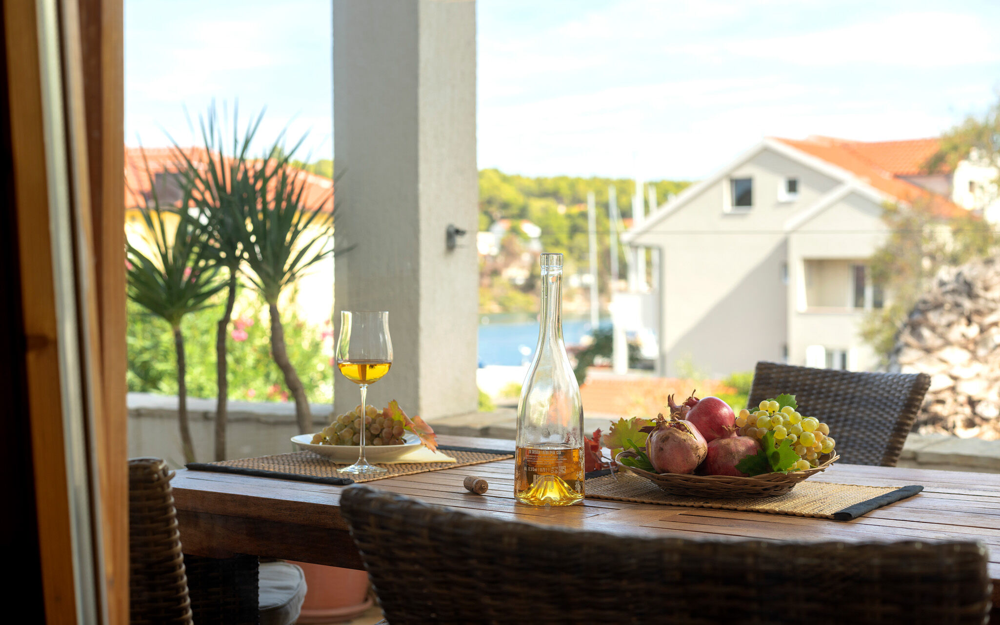 - Aussicht: das Meer, die Grünfläche und den Hof