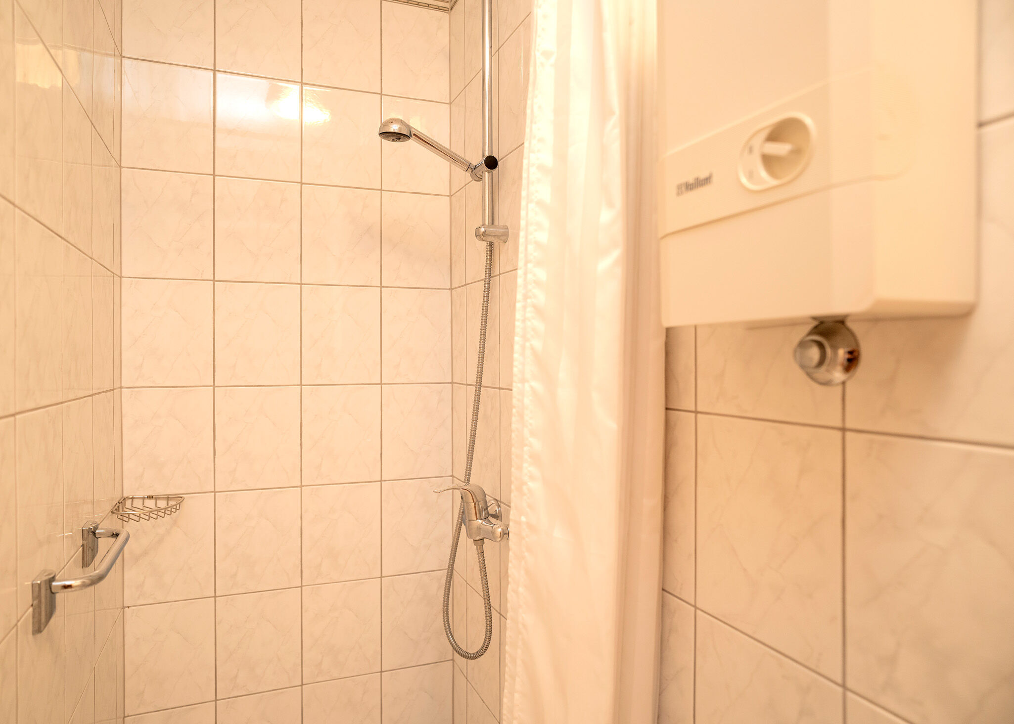 - Warmwasser zum Duschen: Im Bad