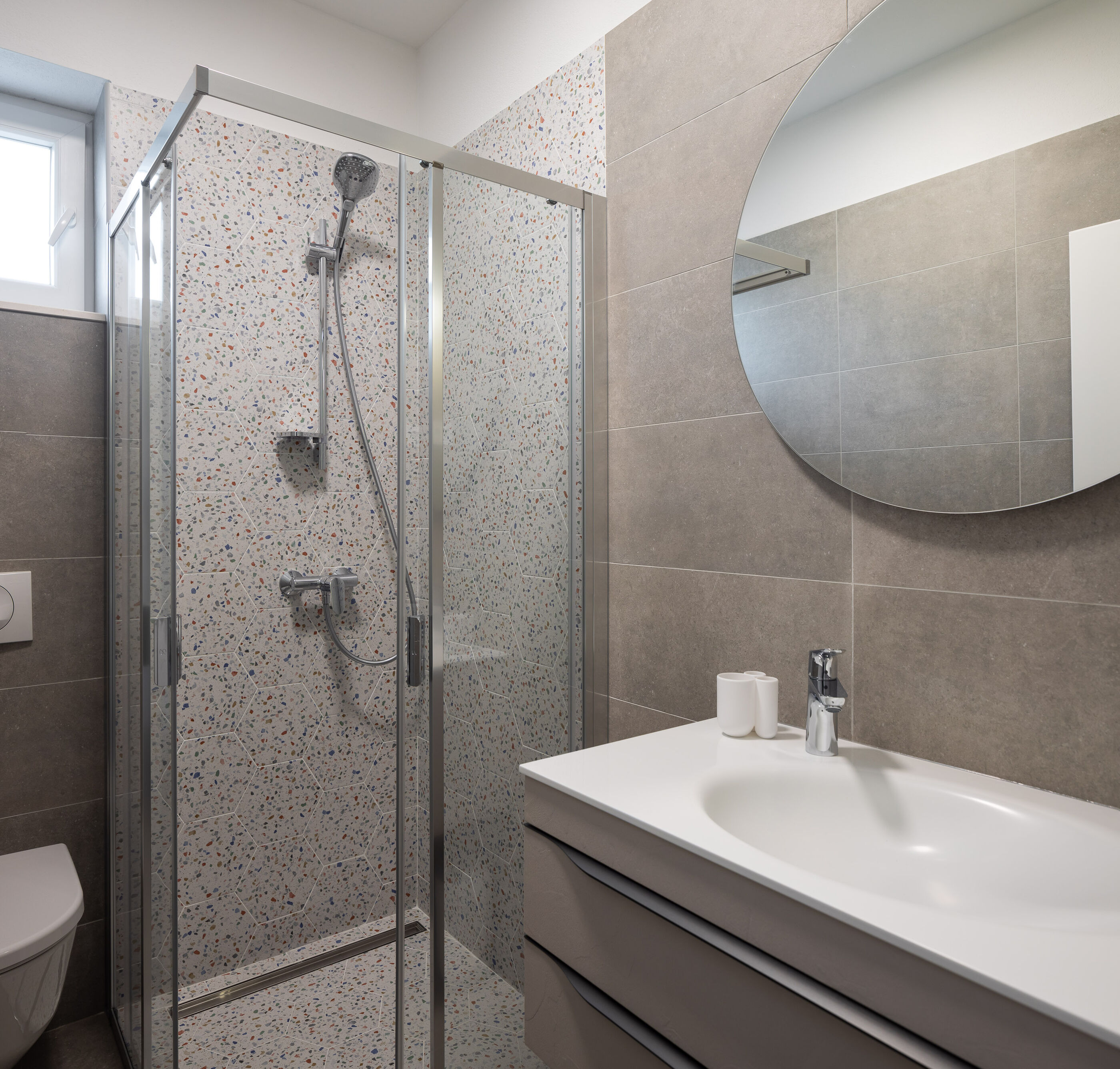 - Warmwasser zum Duschen: Im Bad
