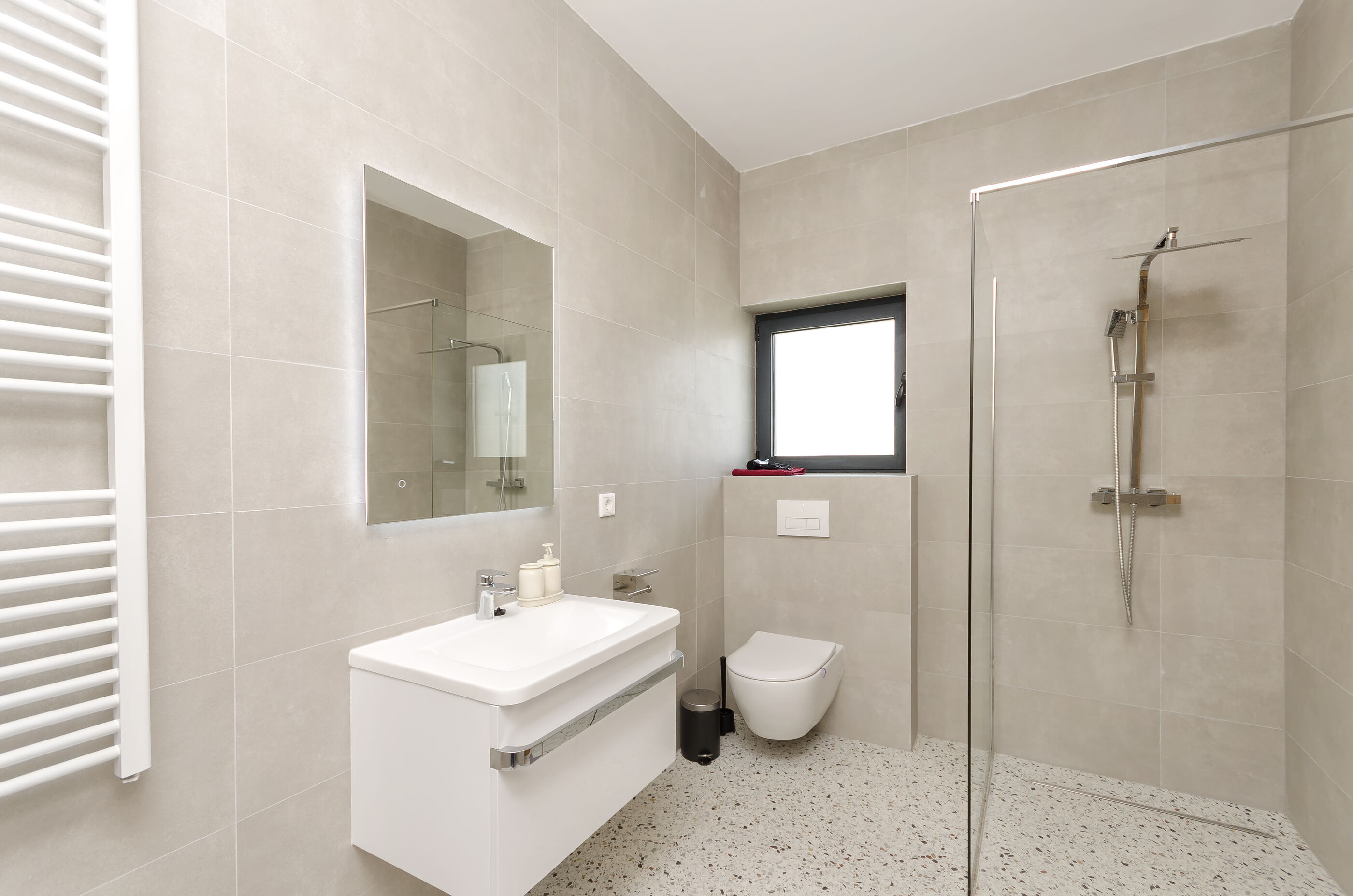 - Warmwasser zum Duschen: Im Bad