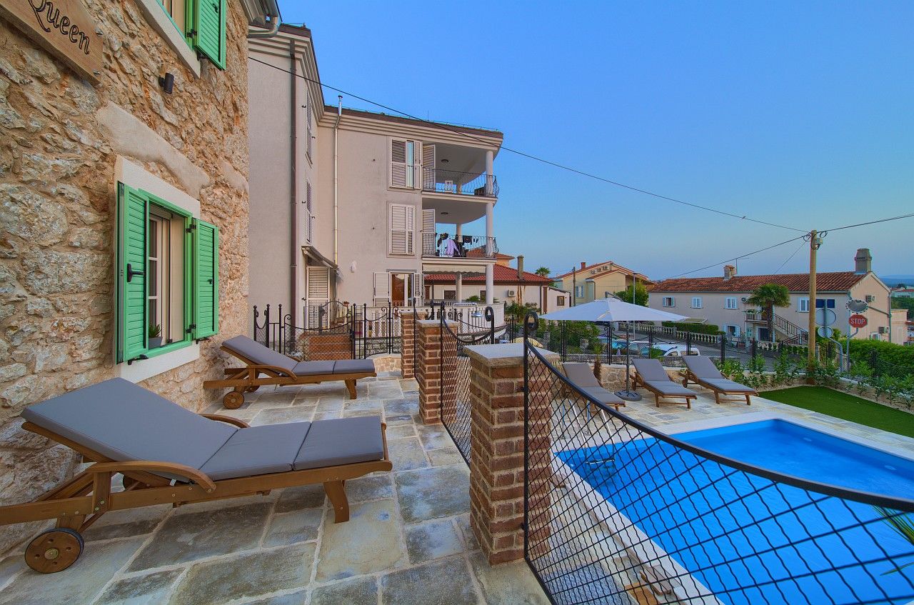 Die Unterkunft Stone Queen befindet sich 100 m vom Meer und 100 m vom Zentrum des Ortes Malinska (otok Krk) entfernt. Die Unterkunft bietet einen schönen Blick auf Das Meer, die Grünfläche und den Hof. Art des Badestrandes ist Sand und Kies. Die Privatunterkunft Stone Queen ist ideal für 8 Personen und verfügt über 4 Zimmer.