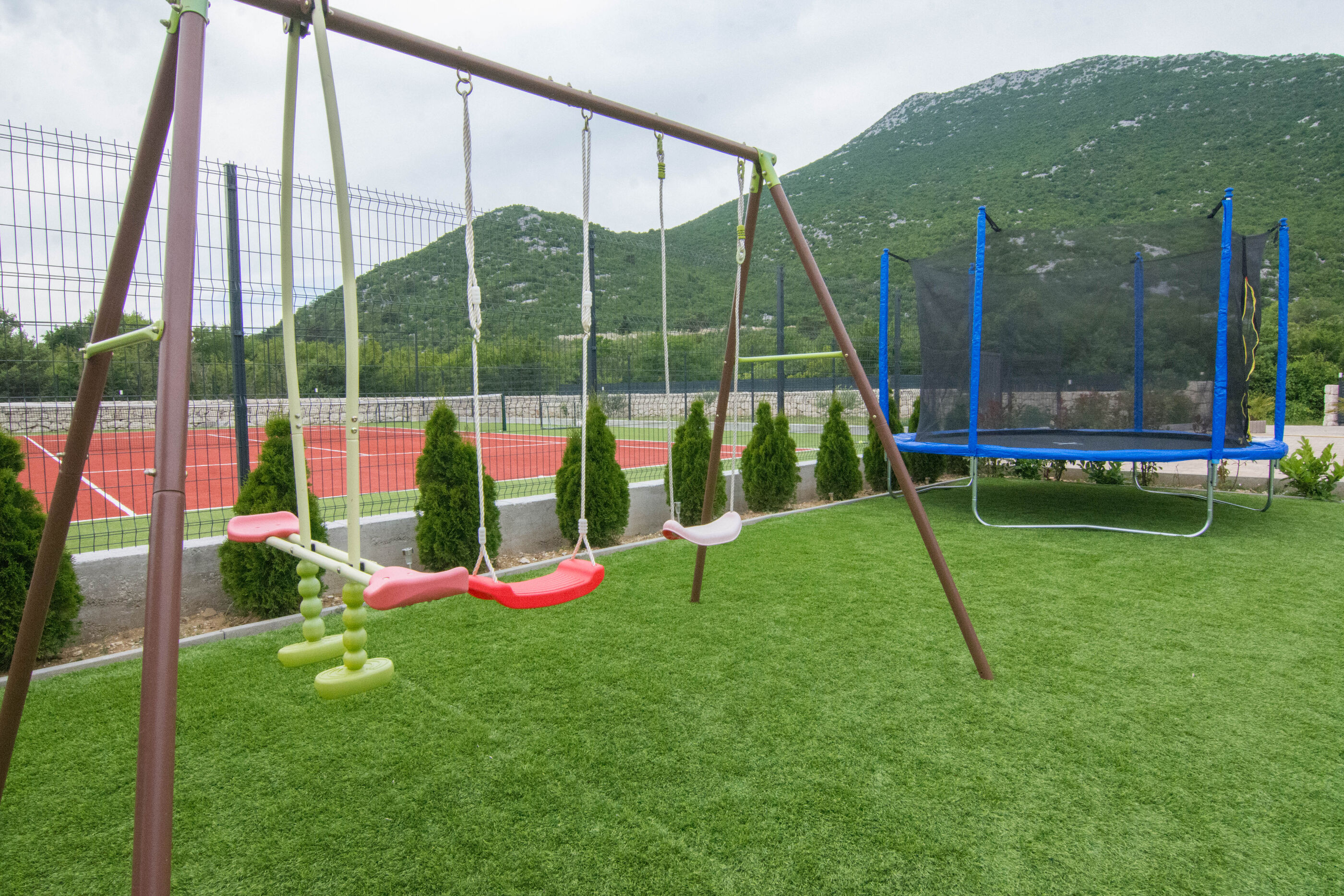 - Aussicht: zelenu površinu i planinu