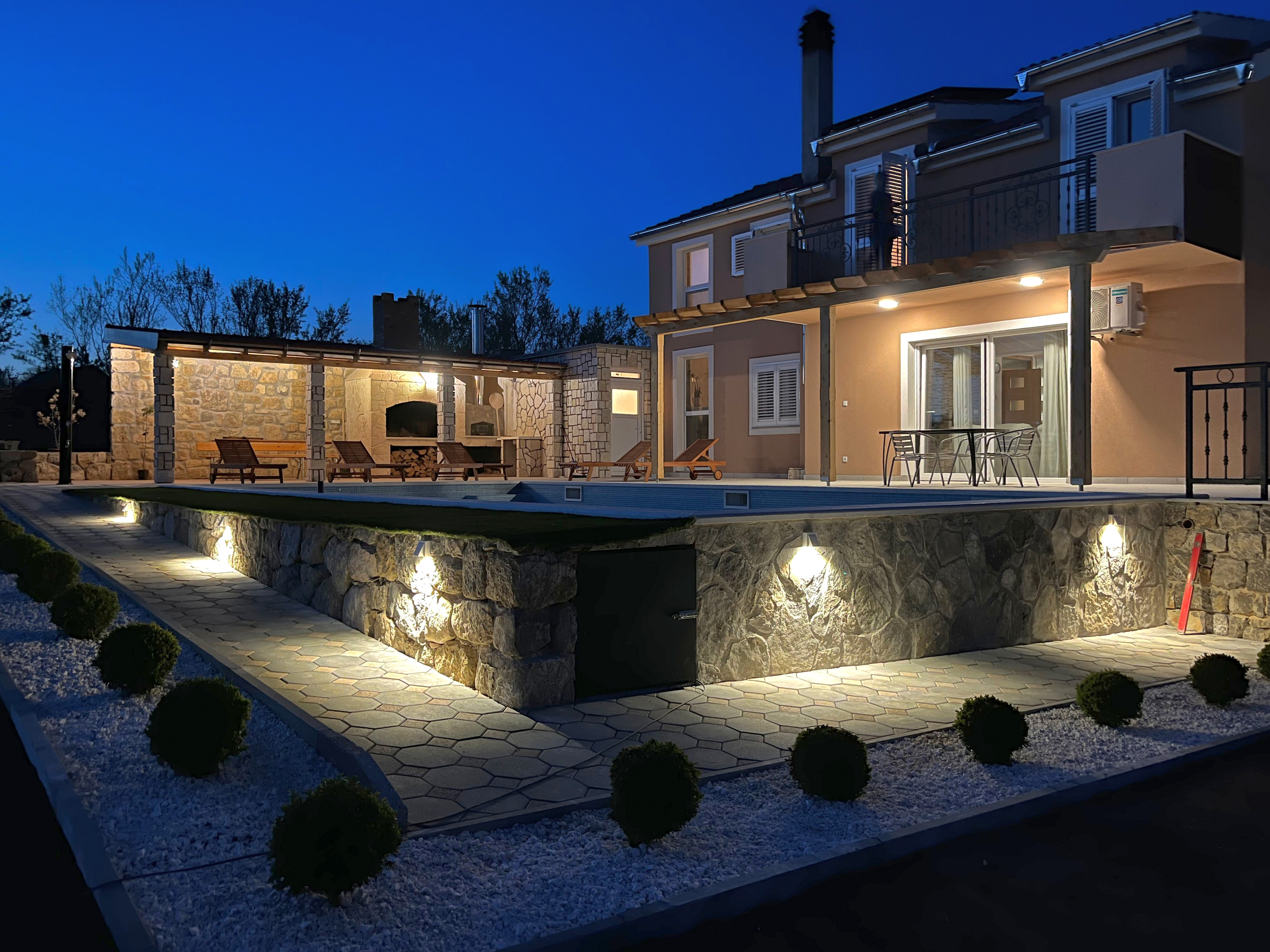 Welcome to our villa Beautiful countryside. In the quiet surroundings of the village you can enjoy the amenities we have provided for you: outdoor pool, barbecue, bread oven, basketball hoop, soccer goal, swings, bowling alley, darts, table tennis table and table football table, bench if you want to exercise. Also, our guests can enjoy the fruits of the garden, and pick up fresh eggs from the chicken coop, which will surely be a nice experience for the youngest. There are many attractions in the area: the mausoleum of the famous sculptor Ivan Meštrović and his birthplace, horseback riding, tennis courts, the town of Drniš is 10 km away, and the Krka National Park is only 19 km away.