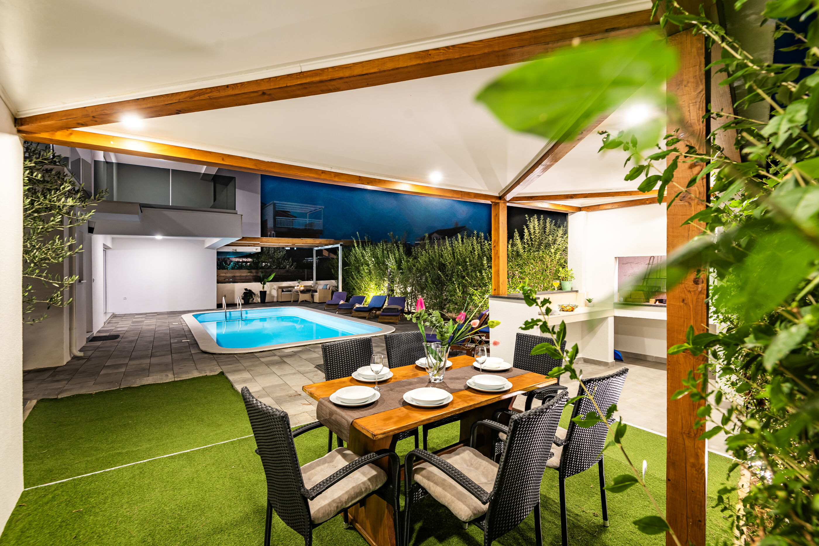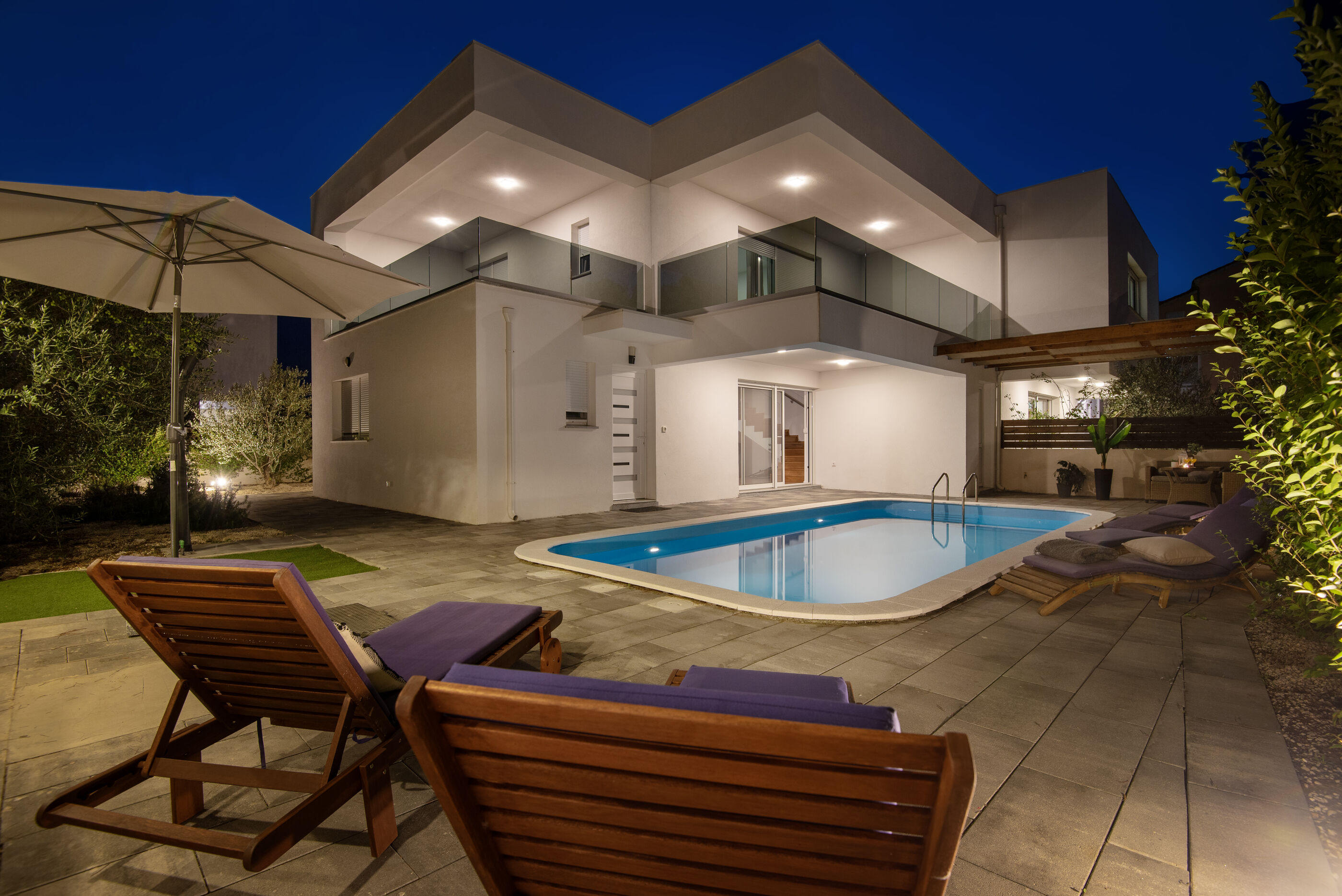 - Note: Welcome to Villa Franko, which is located in the quiet town of Srima, near the popular destination of Vodice. This spacious modern Villa with a pool, which is spread over two floors, offers its guests a comfortable stay and a true rest for body and soul. There are three bedrooms, three bathrooms, a large living room with an equipped kitchen, a large terrace and an outdoor area for grilling, where there is also garden furniture and sunbeds by the pool for the most comfortable stay and rest. Take advantage of the pleasant days by swimming in the pool, preparing barbecued meals and enjoying your free time together with friends or family. The villa is located near beautiful long pebbly beaches, with a long promenade that will allow you to reach the neighboring towns of Vodice and Tribunj along the coast. Experience the benefits of the sea and the sun, which will fill you with energy, watch the most beautiful sunsets with long walks, or enjoy drinking your favorite drinks or tasting local dishes on the terraces of the numerous cafes, restaurants and bars that this destination offers, with the most beautiful views of the magnificent sea and numerous islands.