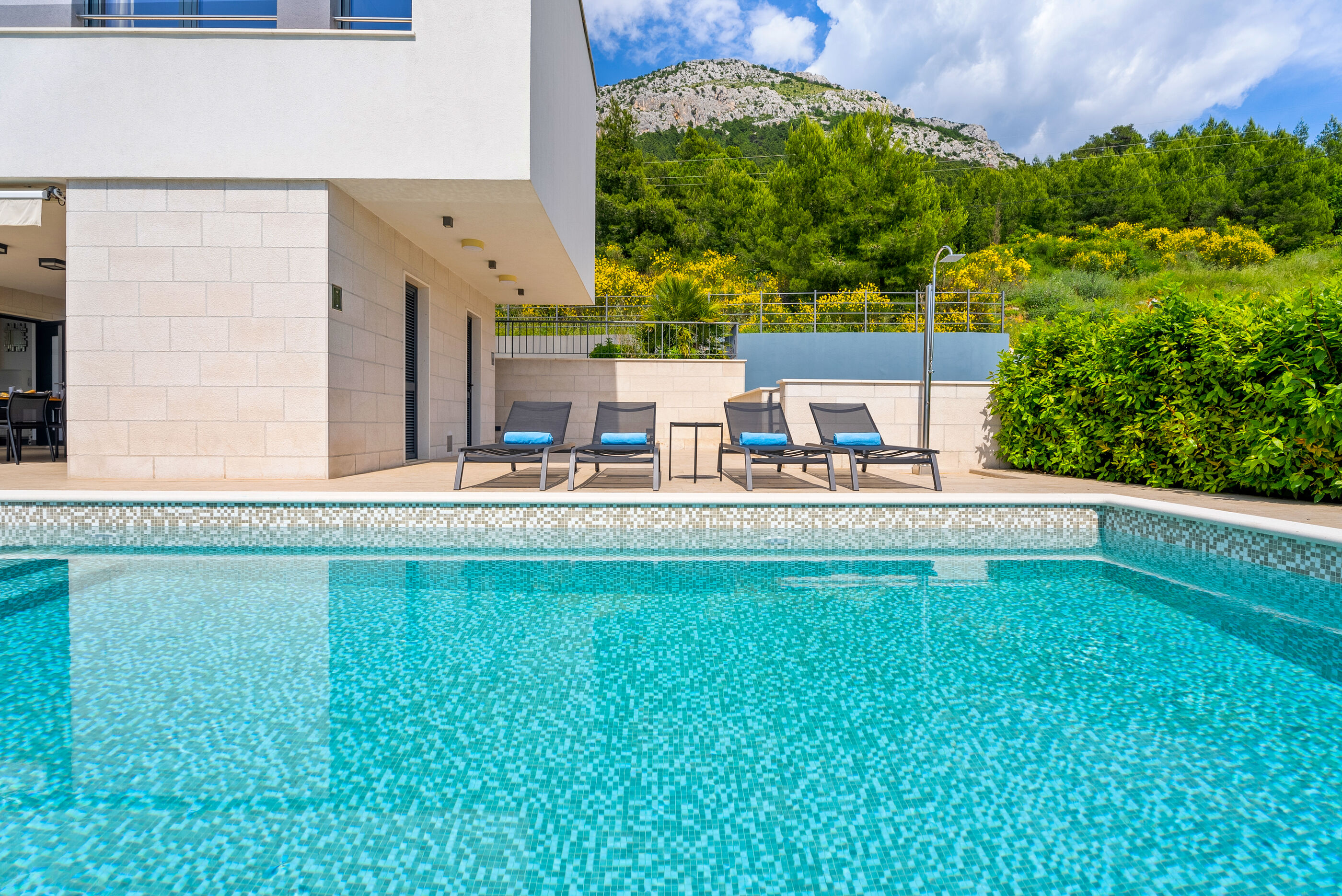 Eine super schöne Villa in einer Gegend, wo uns an nichts gefehlt hat, sauberer Kiesstrand mit wenig Touristen, gleich nebenan Möglichkeit zum Angeln, Restaurants an der Promenade, Jetski Ausleih, die Stadt Omis zu Fuß erreichbar(auch mit 2 Babys)
