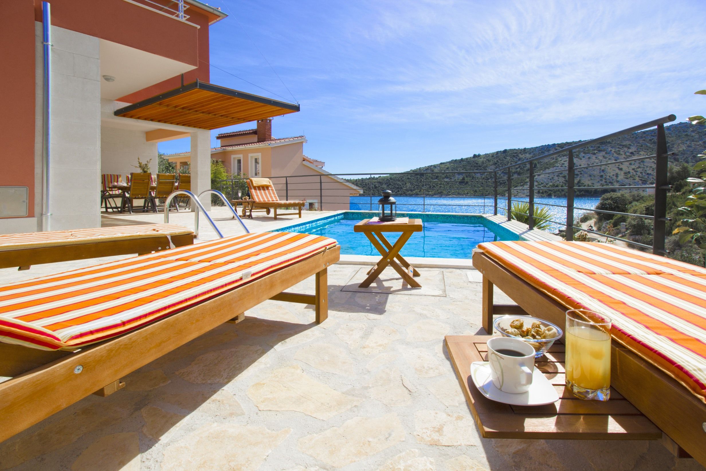 Enjoy crystal clear sea and catch long sunsets at pebble and concrete slabs beach, 20 m away. For those who prefer privacy, dive in Outdoor pool & soak up the sun all day long.