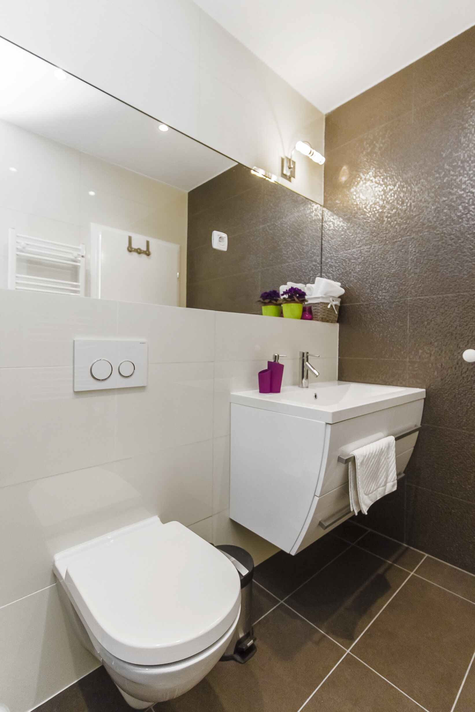 - Hot water for shower: in the bathroom