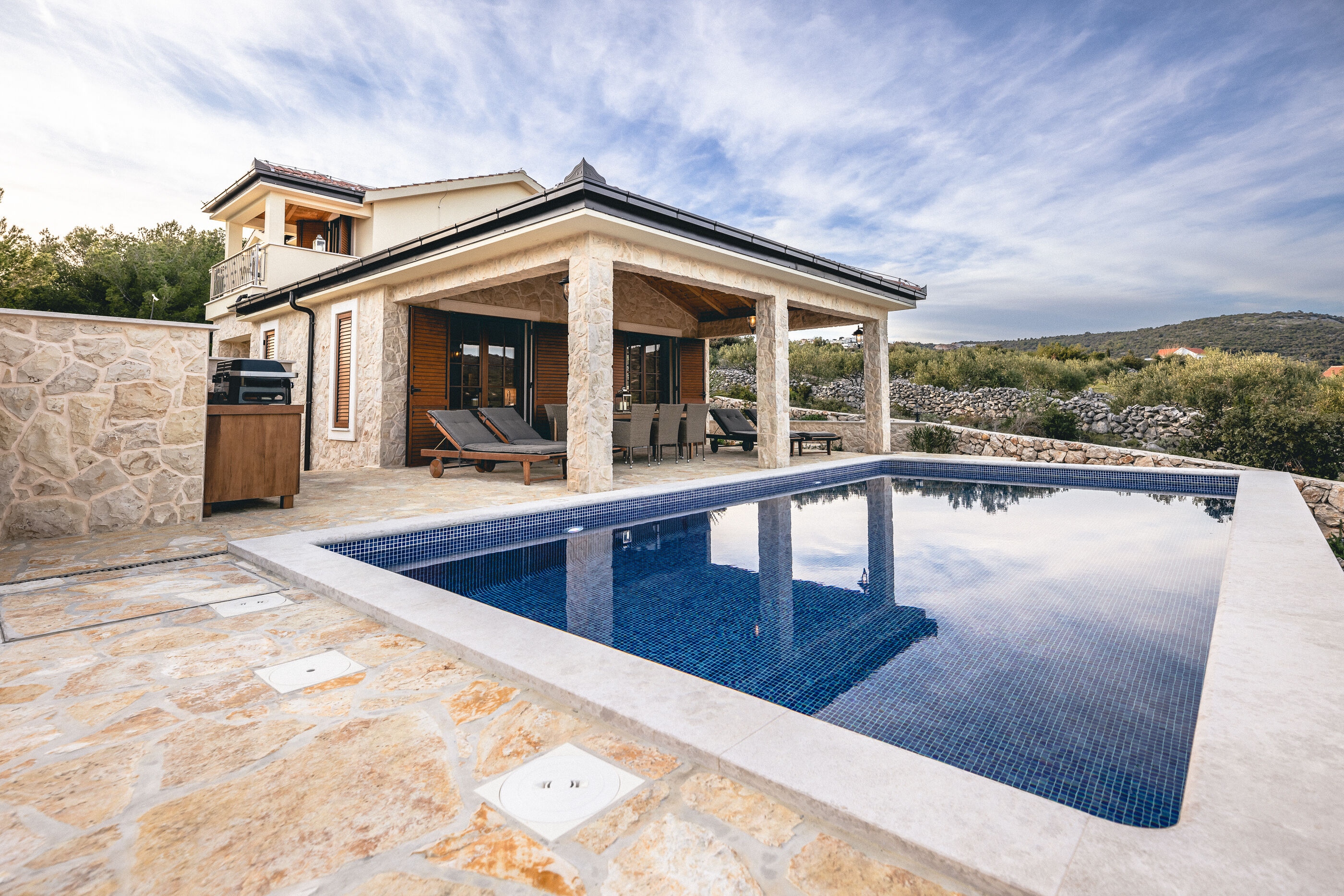 Villa Maslina is not just a holiday accommodation; it's a retreat that caters to those who appreciate both modern amenities and the charm of traditional rustic architecture. Villa Maslina features a soothing sauna and an inviting outdoor pool, providing a perfect setting for relaxation and rejuvenation. The outdoor barbecue area, coupled with a charming dining space, is ideal for savoring al fresco meals and enjoying the pleasant Mediterranean climate. With four spacious bedrooms, each with its own private bathroom, the villa ensures both privacy and convenience for all guests.