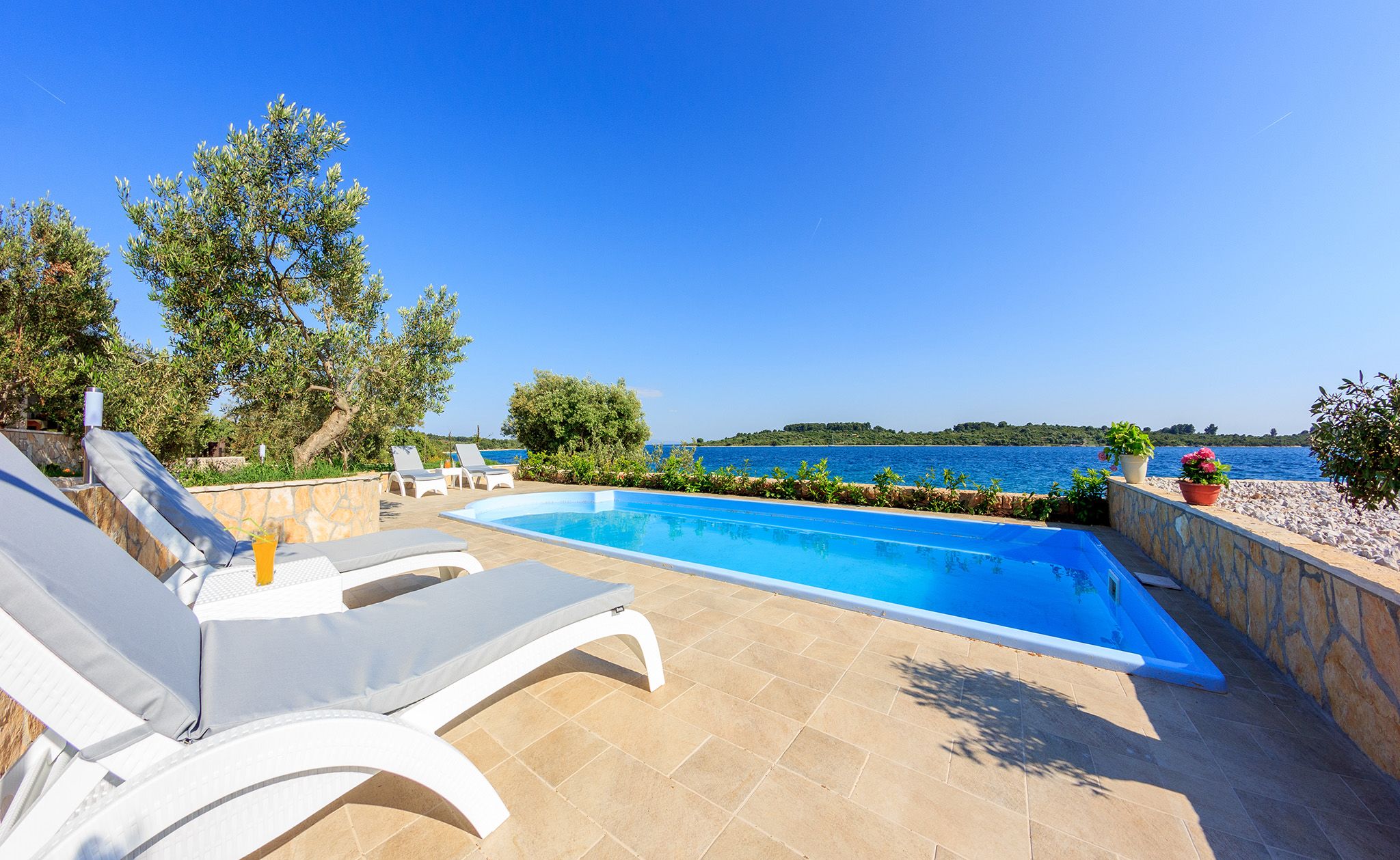 Villa Renata, located in Okrug Gornji on the picturesque island of Čiovo, offers a private and peaceful retreat just a short drive from the historic town of Trogir and the vibrant city of Split. Accommodating up to eight guests, the villa boasts four stylish bedrooms, two modern bathrooms, a fully equipped kitchen, and a spacious living area, making it perfect for families and groups.