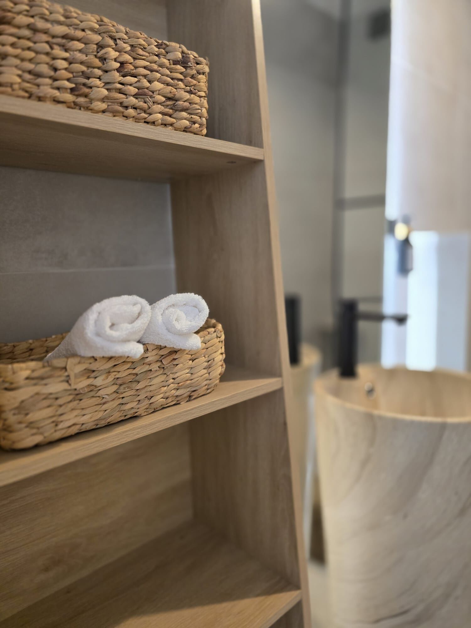 - Hot water for shower: in the bathroom