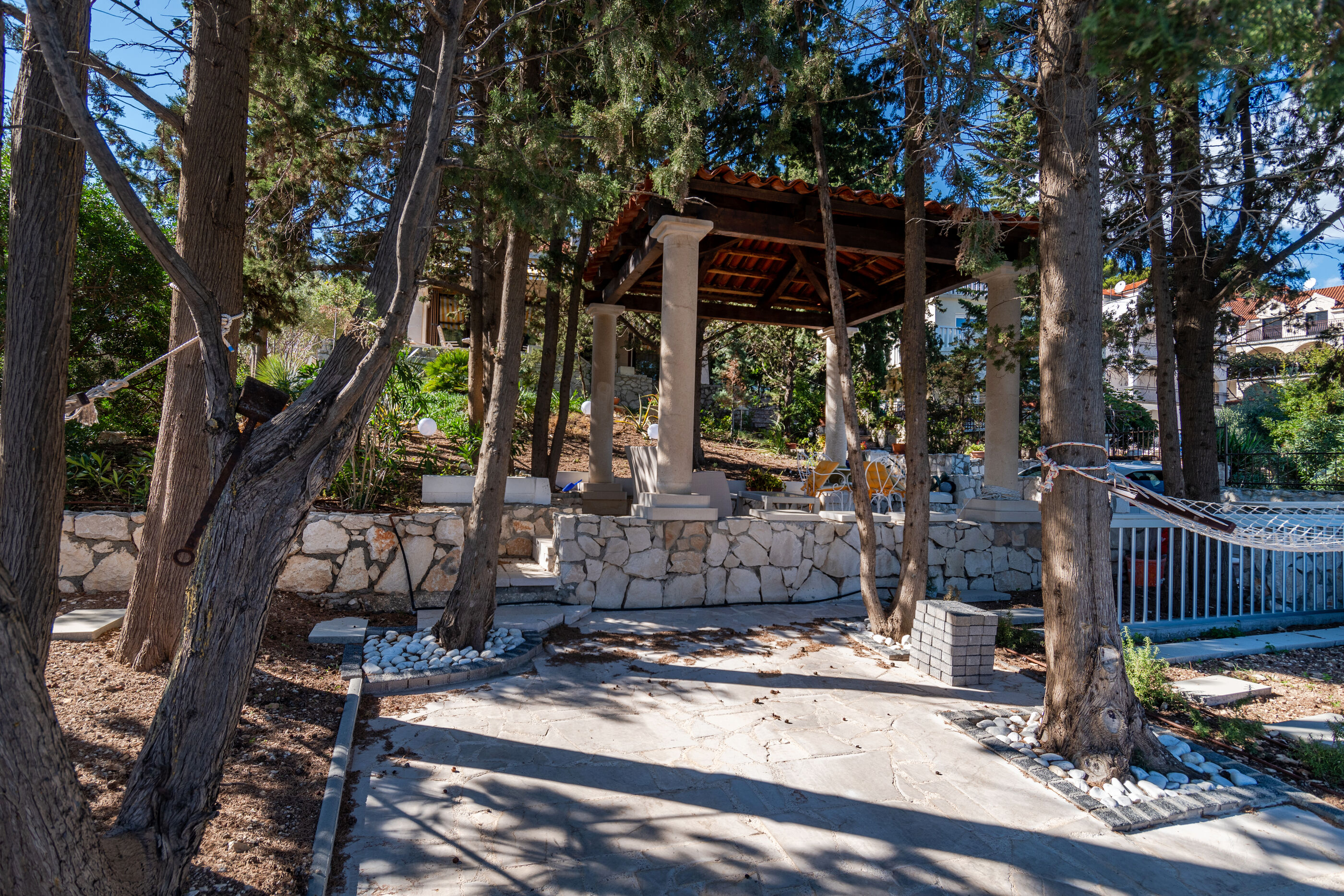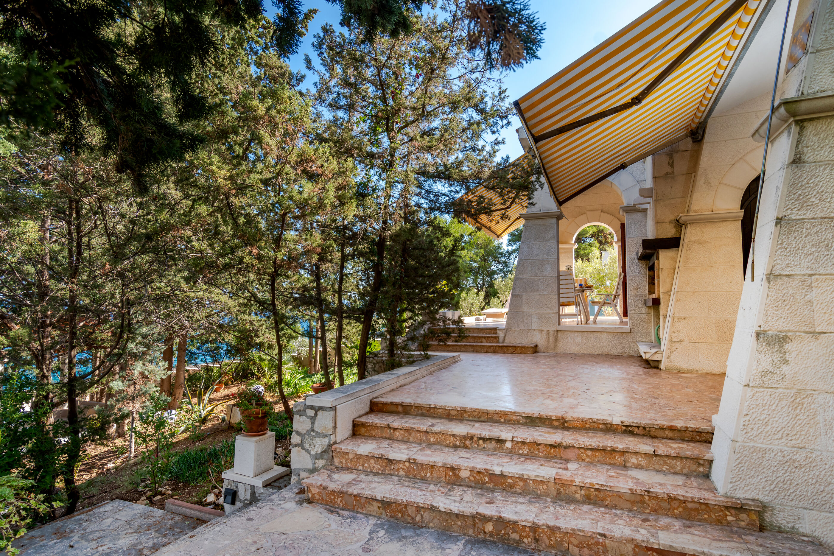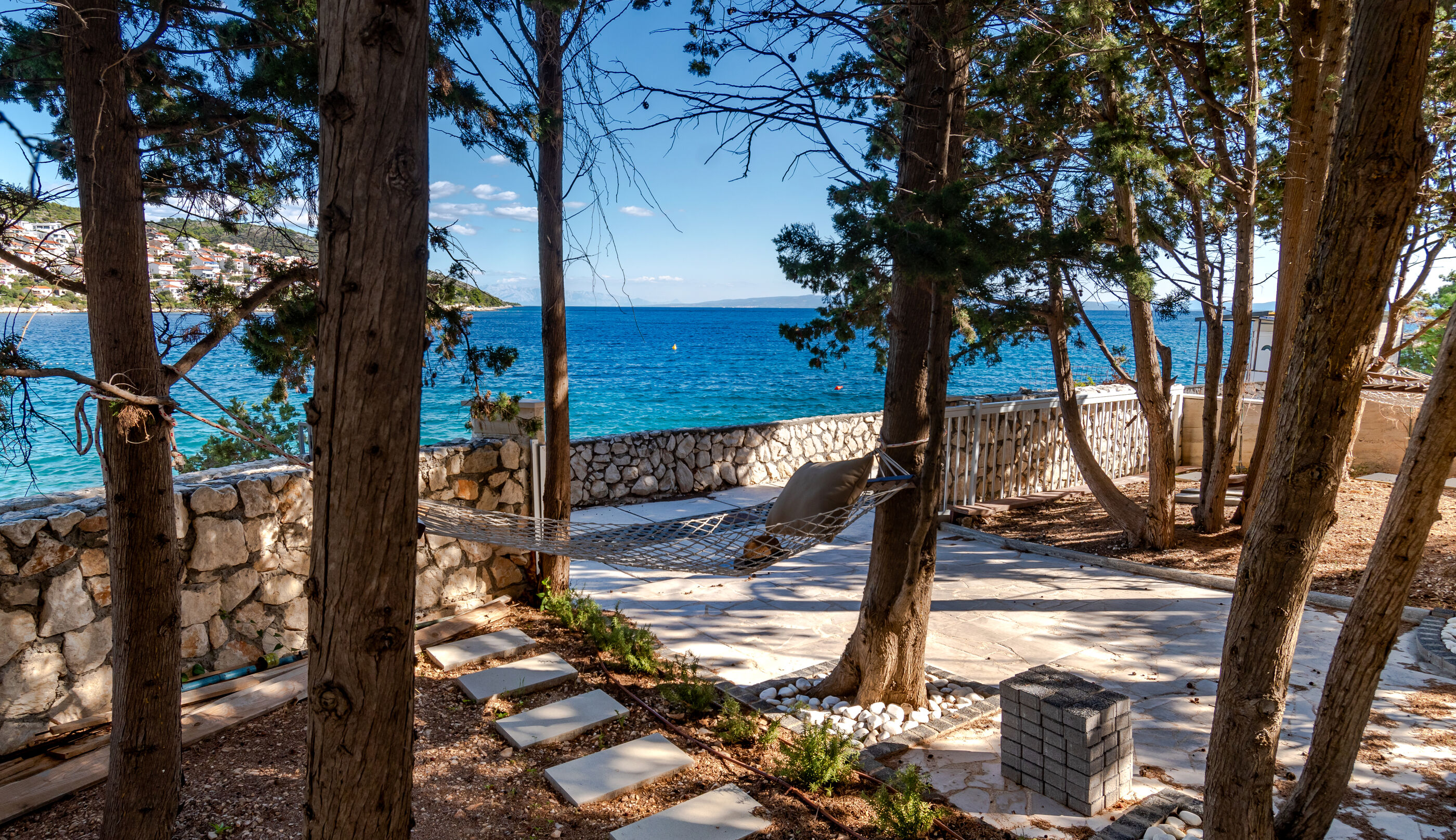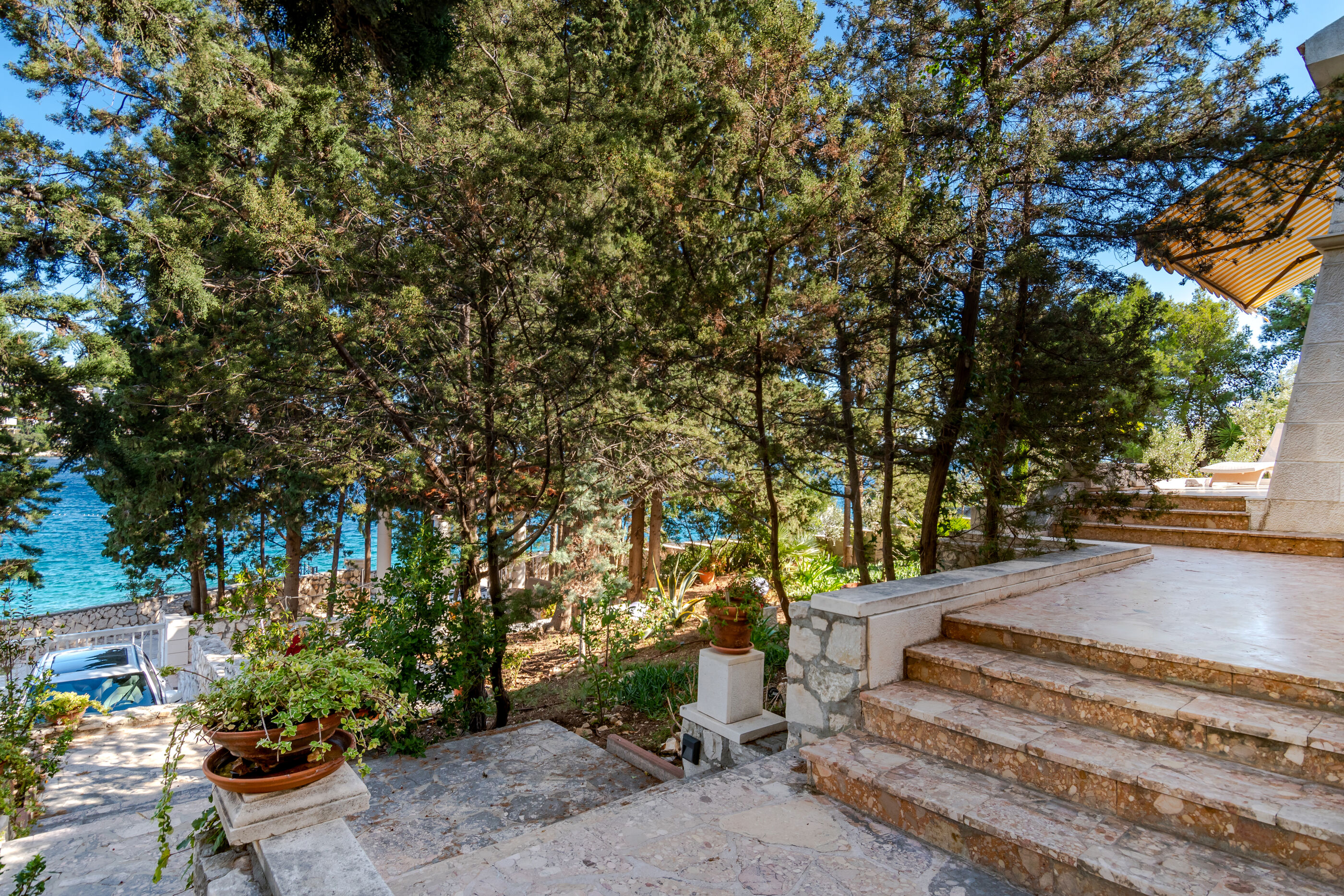Die Villa liegt an einer zauberhaften Bucht direkt am Wasser mit Kies oder Felsen, was man will.