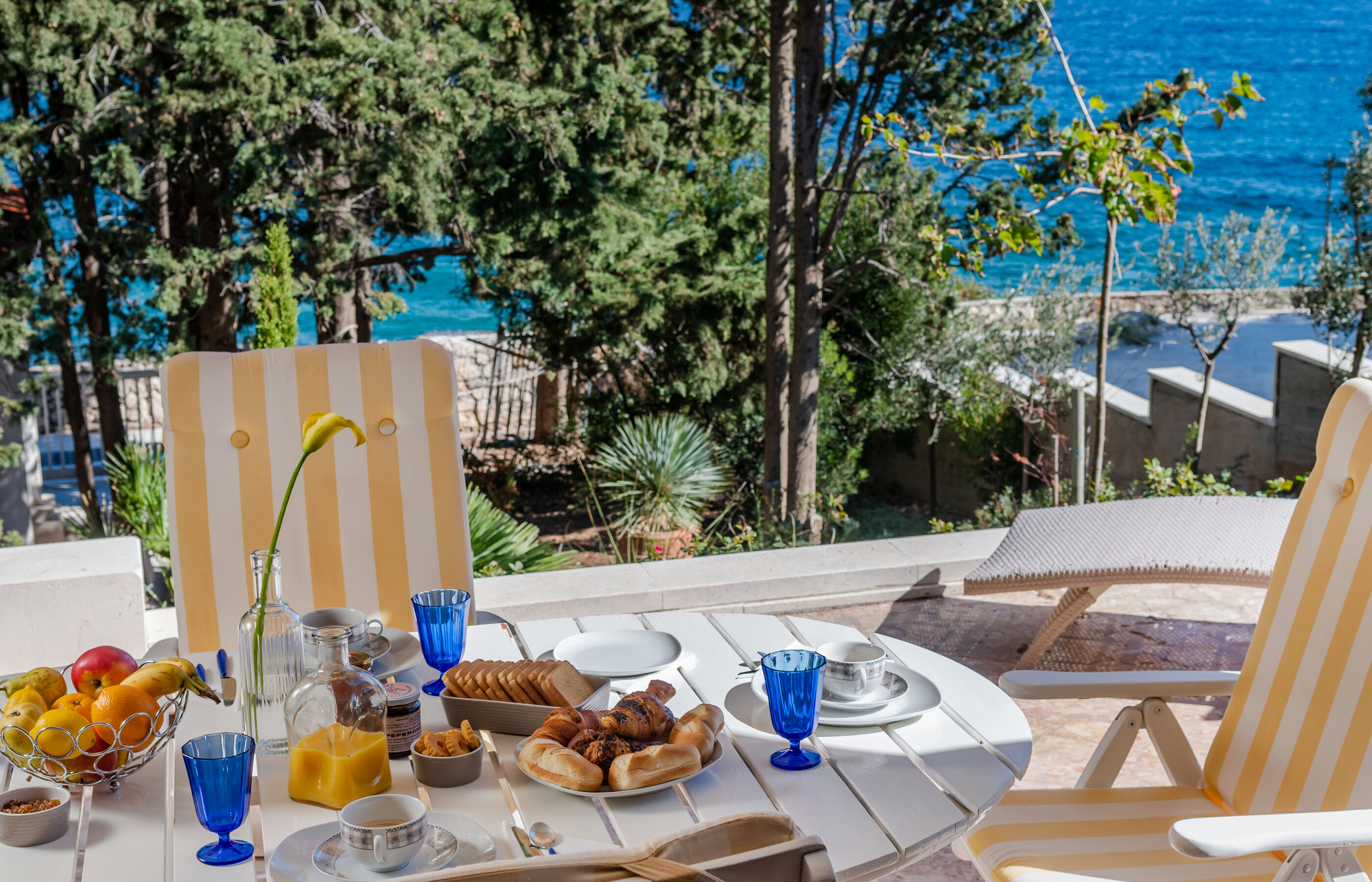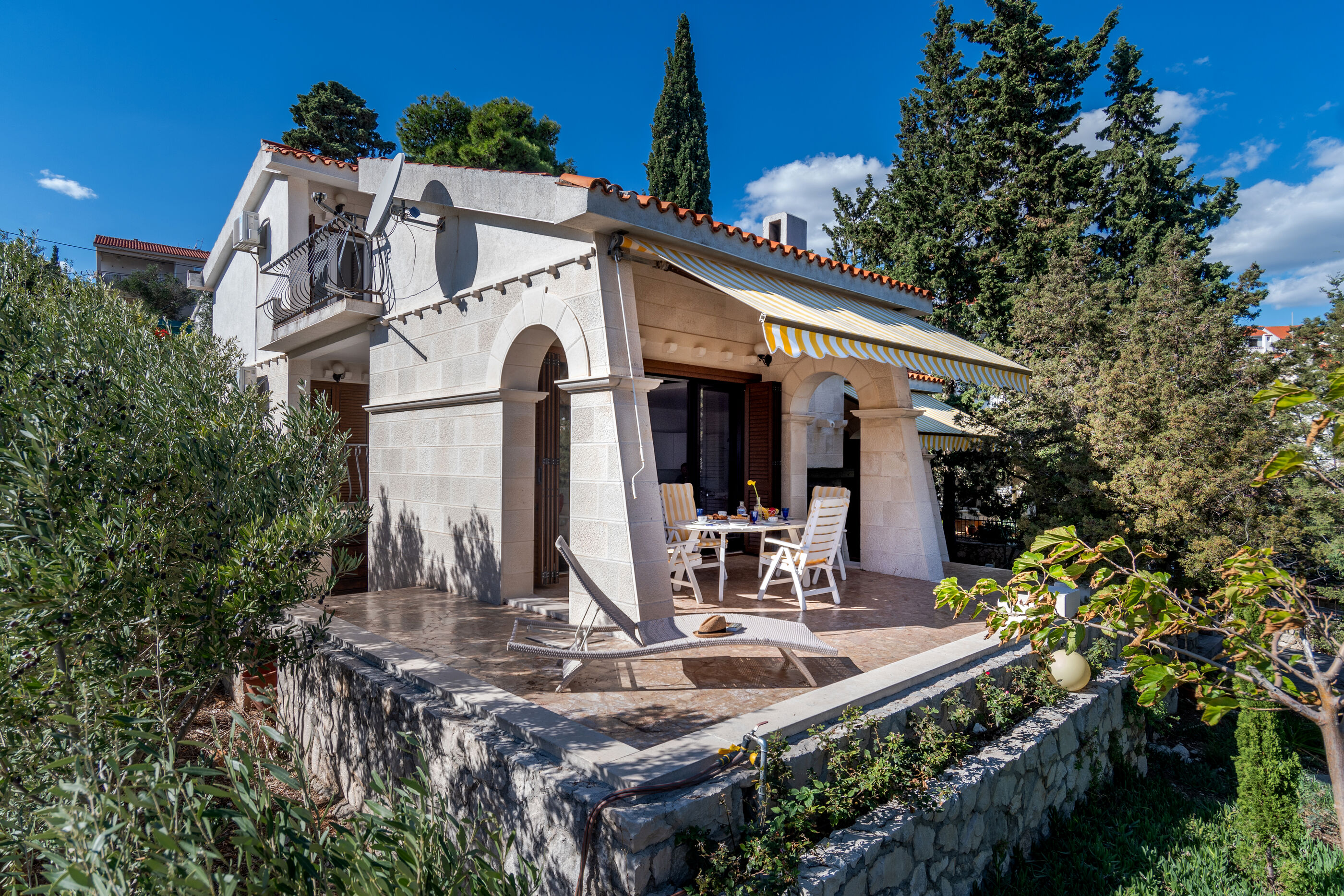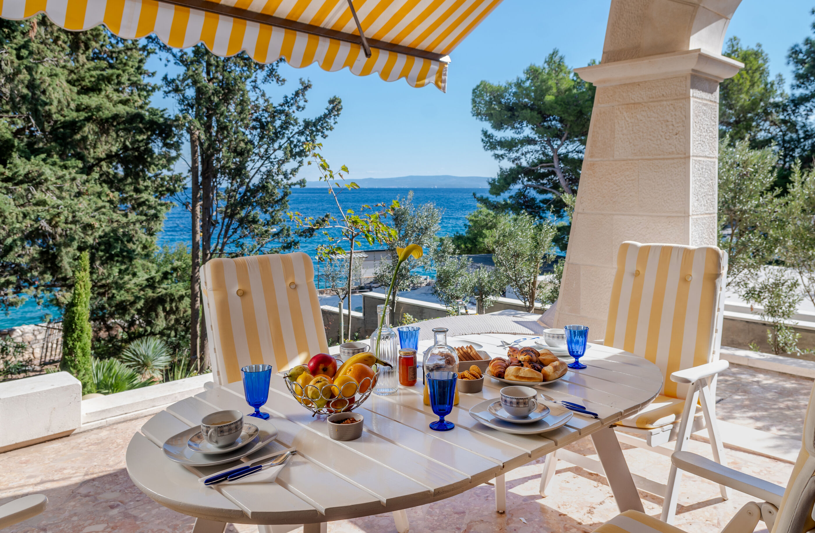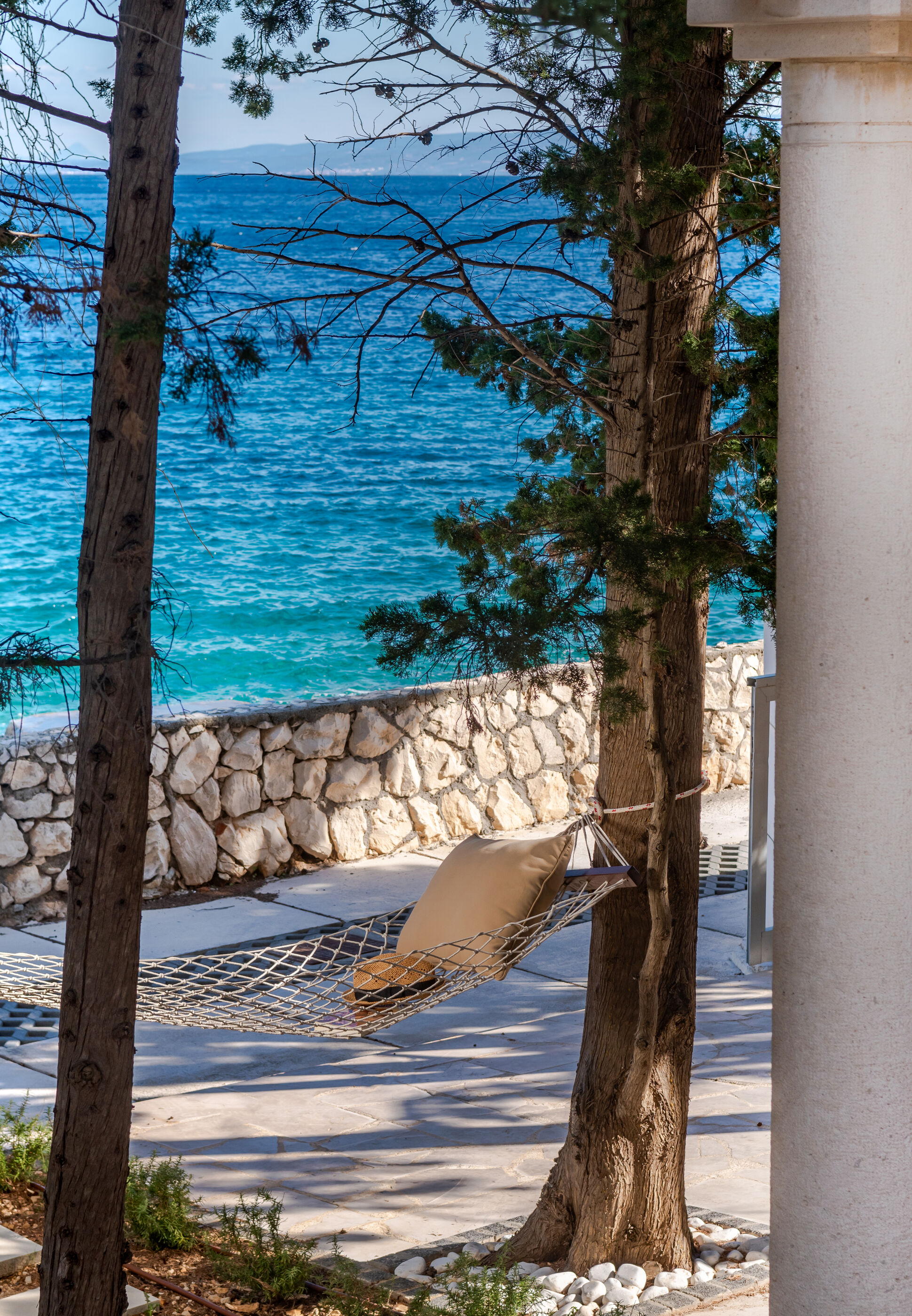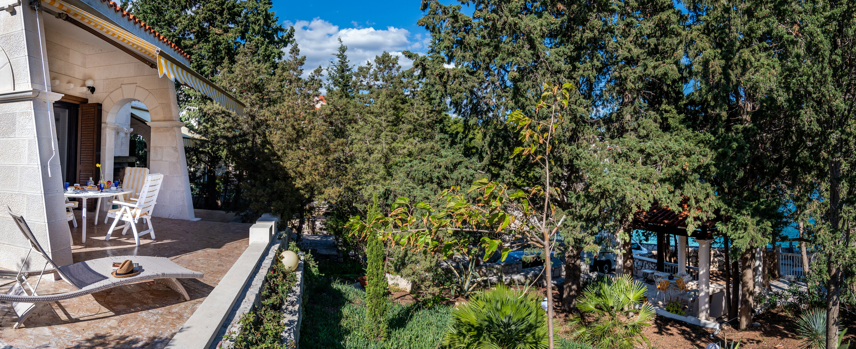 Die Villa liegt an einer zauberhaften Bucht direkt am Wasser mit Kies oder Felsen, was man will.