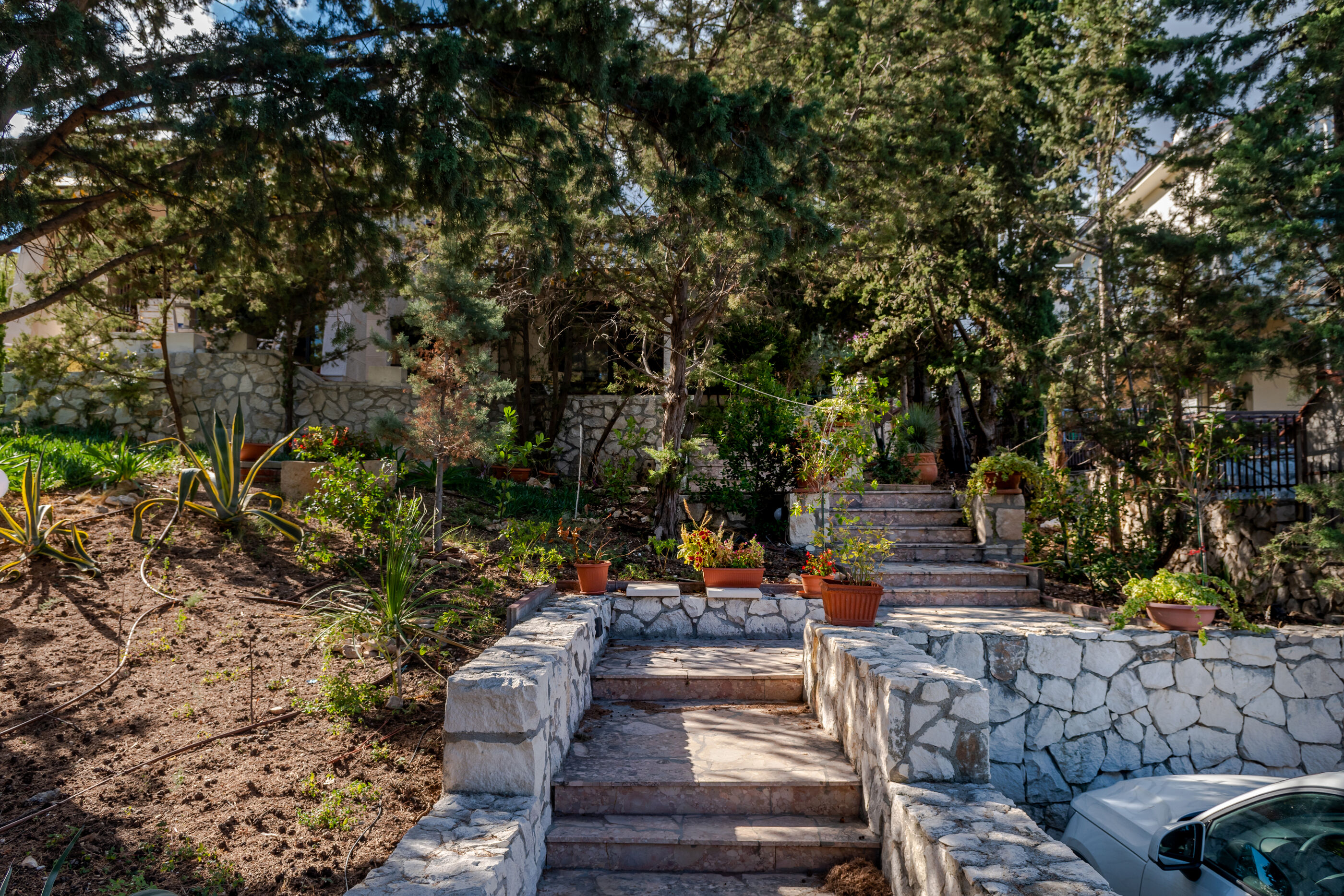 - Hedge or wire/stone fence around the garden: Yes