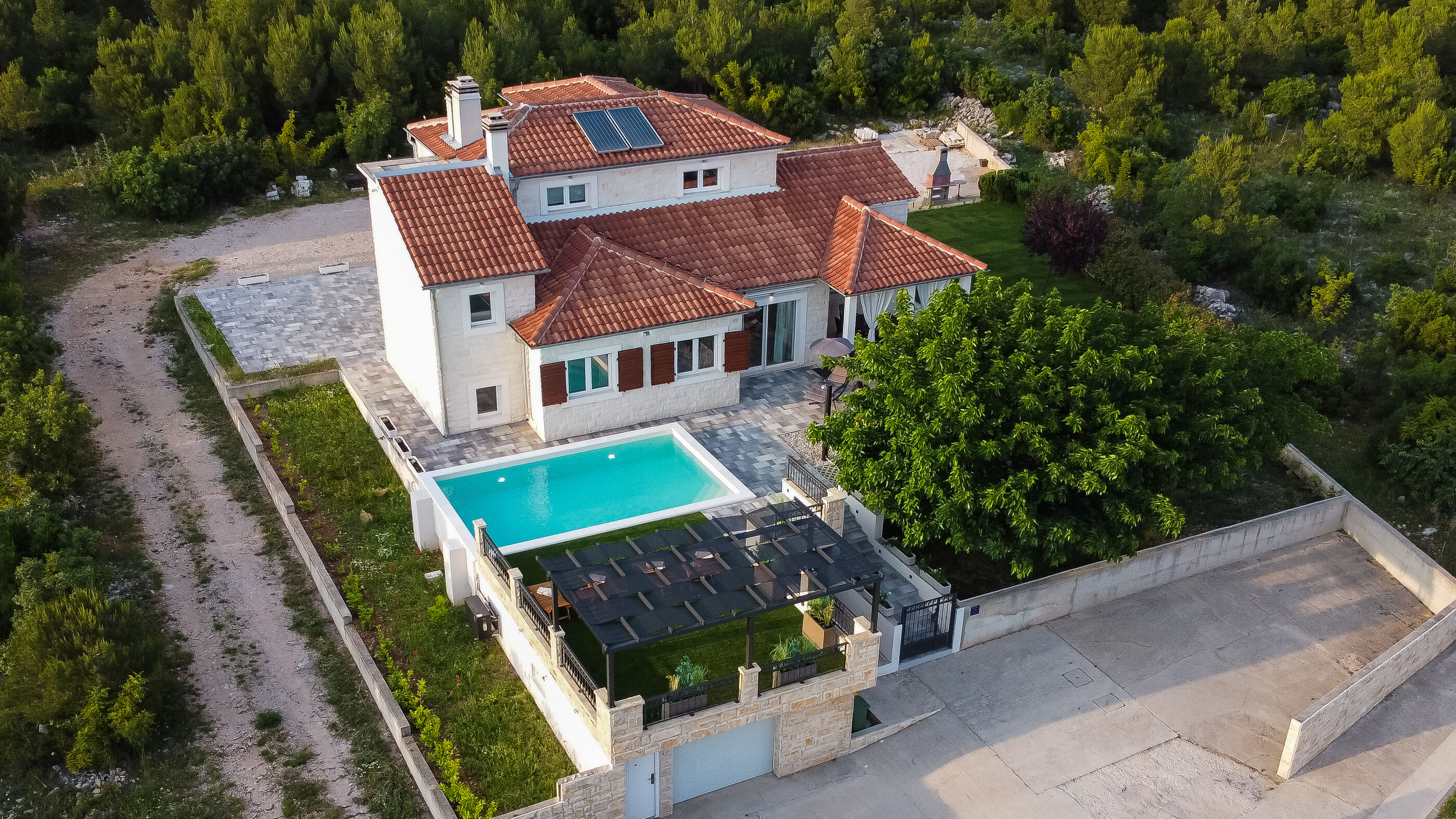 Discover Villa Whitestone in the picturesque village of Dubrava, Šibenik, Croatia. This charming stone villa seamlessly blends traditional allure with modern comforts, creating the perfect setting for an unforgettable vacation. Villa Whitestone welcomes you with an inviting outdoor heated pool, where you can relax and soak up the Mediterranean sun. The villa's lush green garden provides a serene backdrop for relaxation and quality time with friends and family.