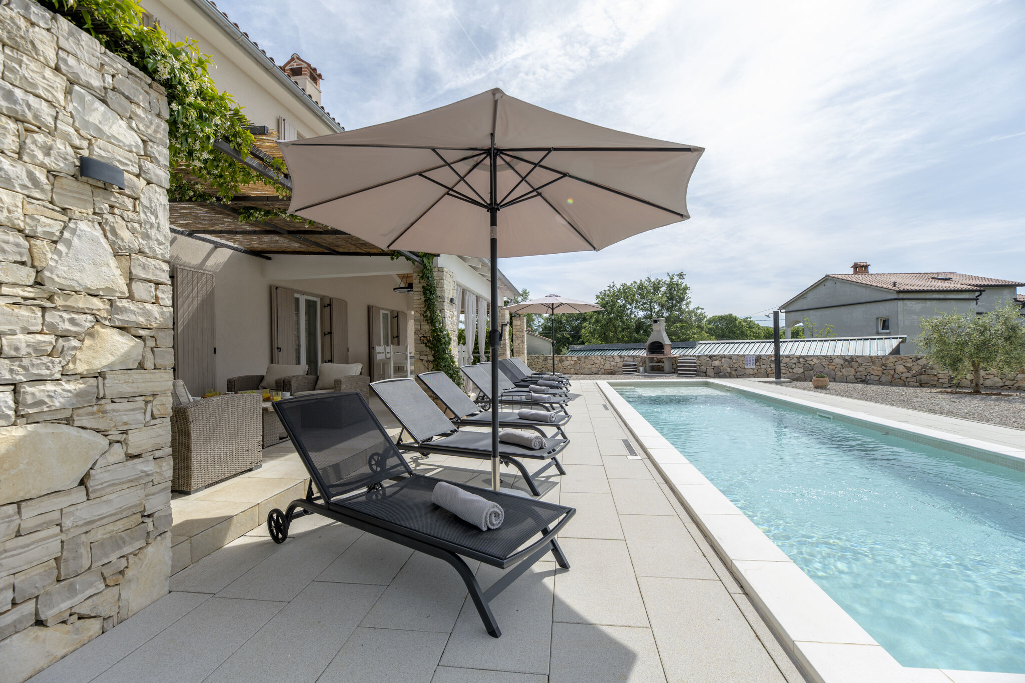 Predivna Istra i predivna Villa Batelica omogućit će Vam odmor kakav ste poželjeli. Villa se nalazi u blizini gradića Labina. Mirna lokacija omogučit će vam mir prilikom odmora, a blizina grada i mora pružit će Vam mogućnost odlaska u obilazak ili na kupanje. Kuća se sastoji od 4 spavaće sobe, 4 kupaonice i 1 toaletom.