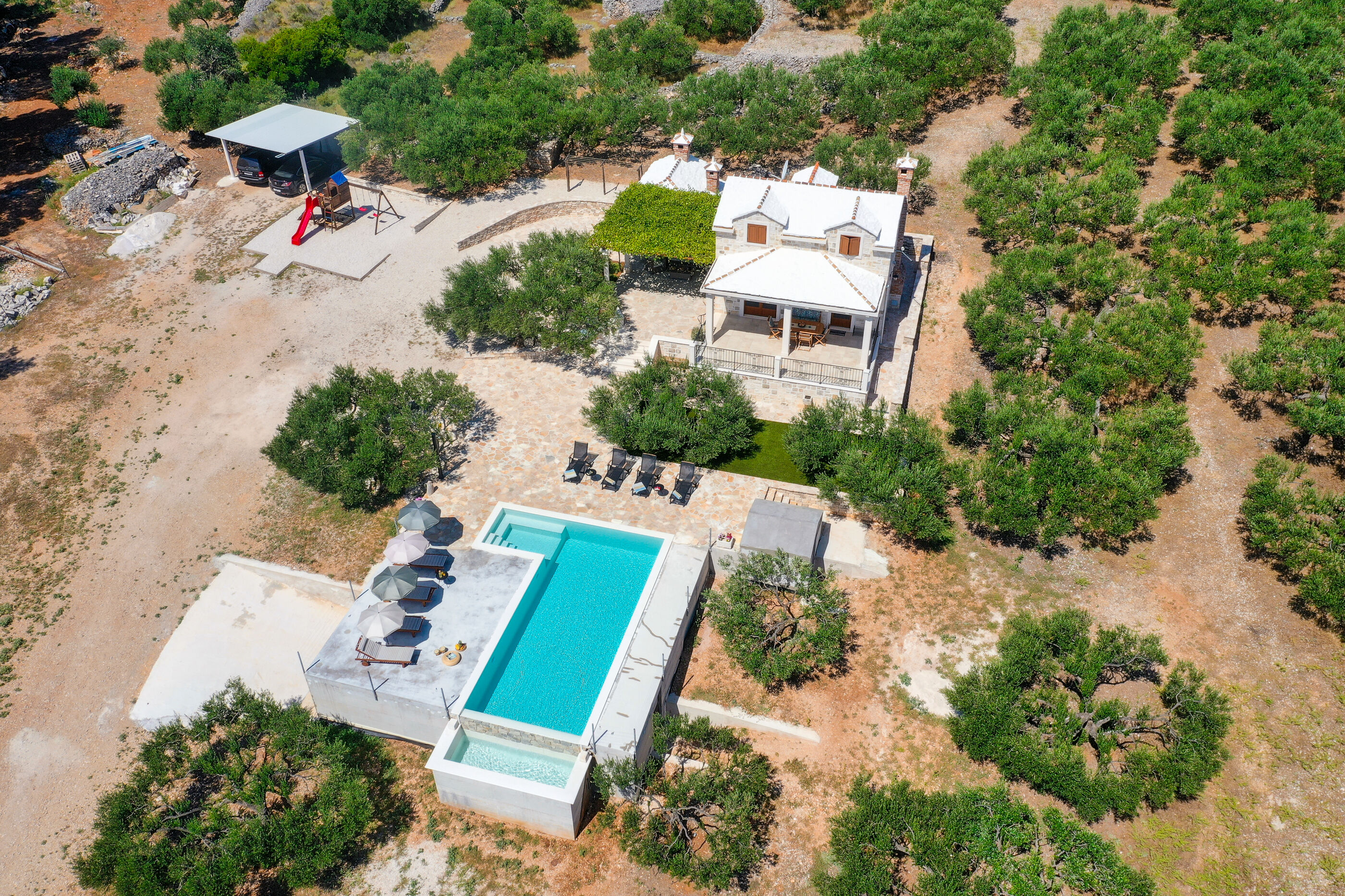 Uživajte u kristalno čistom moru i dugim zalascima na stjenovita i šljunčana plaži, udaljenoj 150 m. Za one koji preferiraju privatnost, uronite u Vanjski bazen i upijajte sunce cijeli dan.