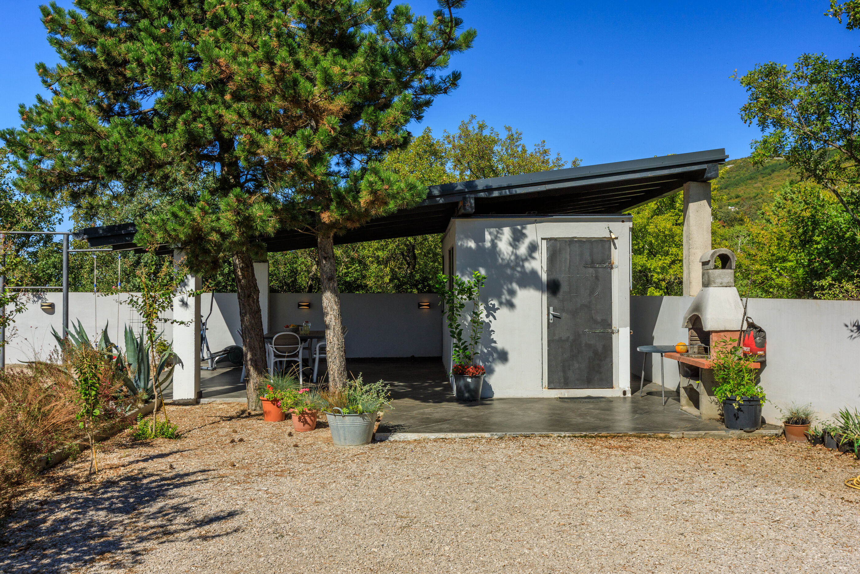 Der überdachte Platz beim "Container" (Geräteschuppen) sieht auch nicht sehr einladend aus, passt so gar nicht zum wunderschönem Haus!
