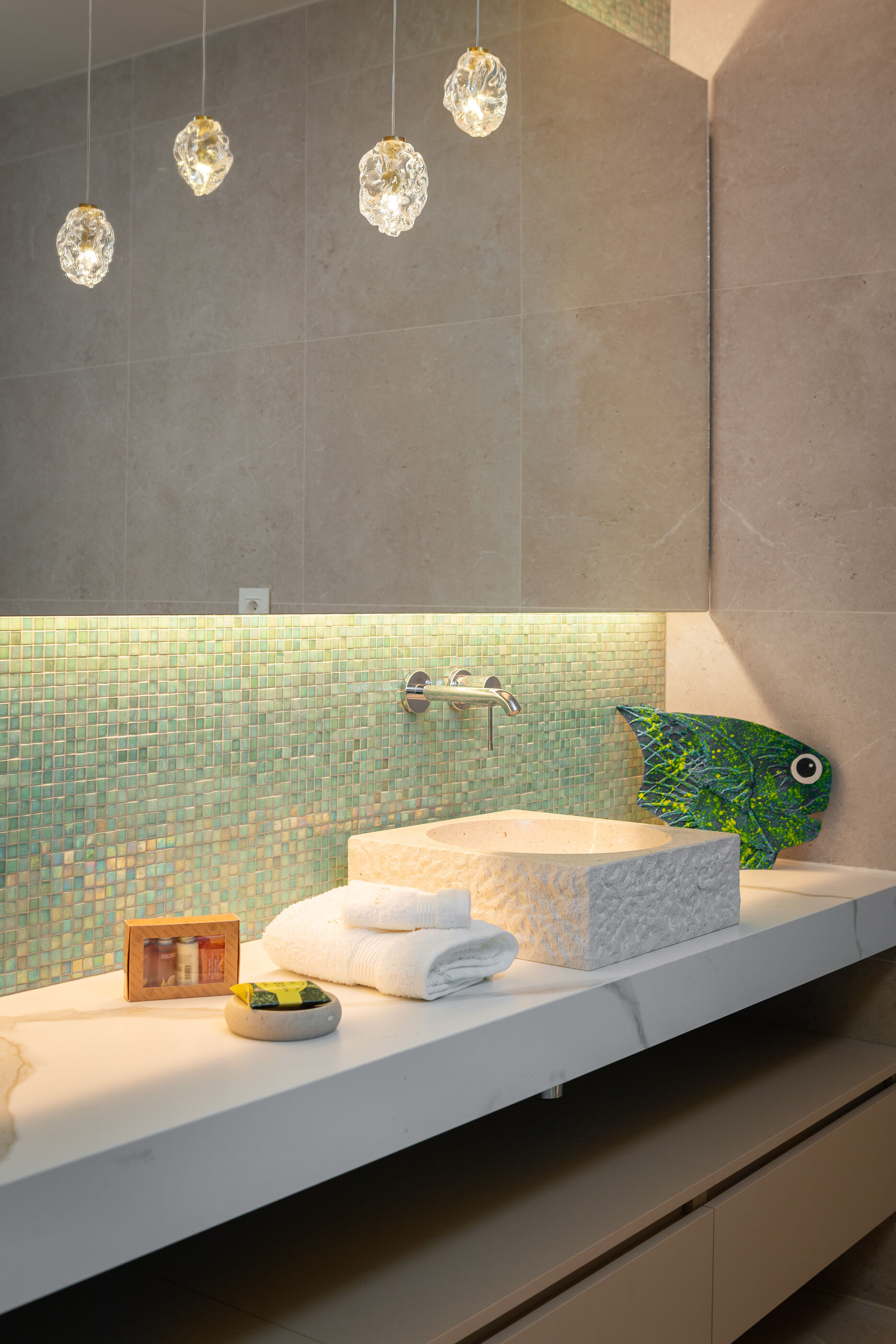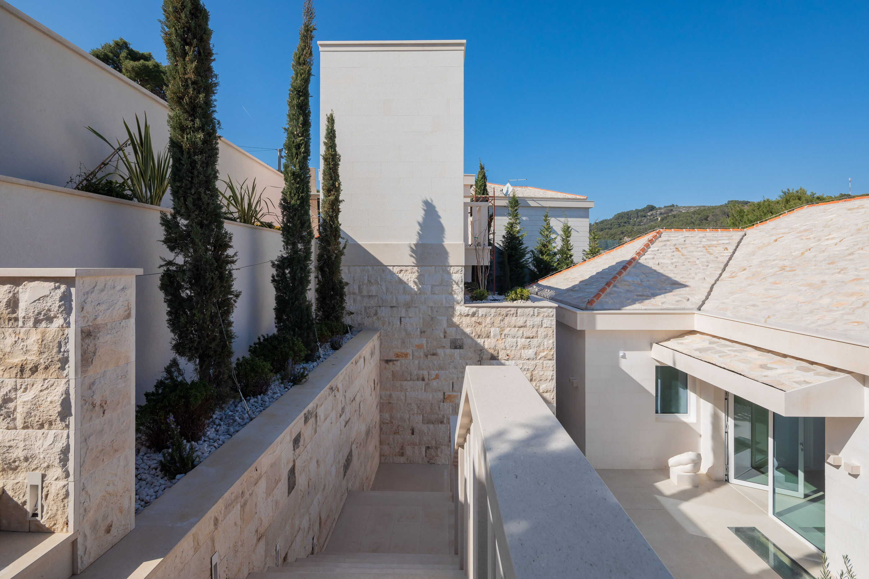 Uživajte u kristalno čistom moru i dugim zalascima na stjenovita i betonske ploče plaži, udaljenoj 10 m. Za one koji preferiraju privatnost, uronite u Vanjski bazen i upijajte sunce cijeli dan.