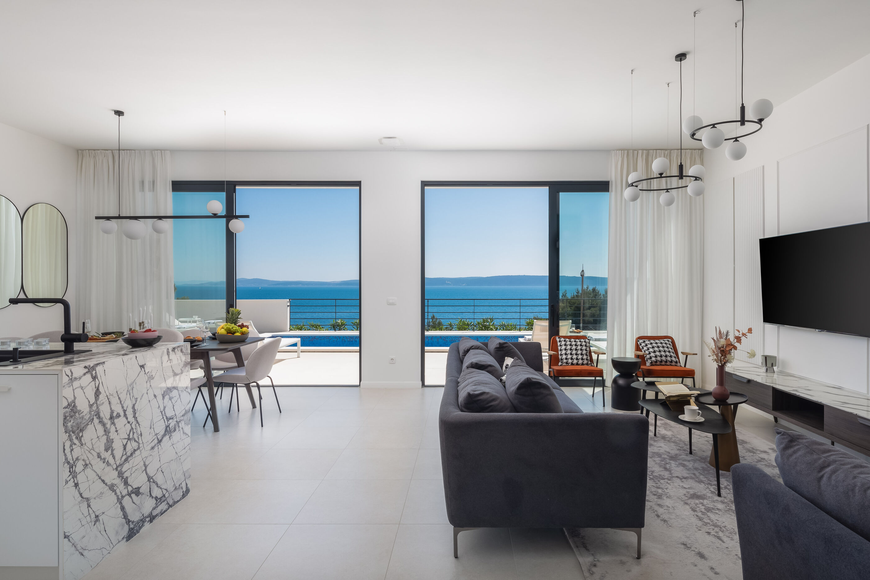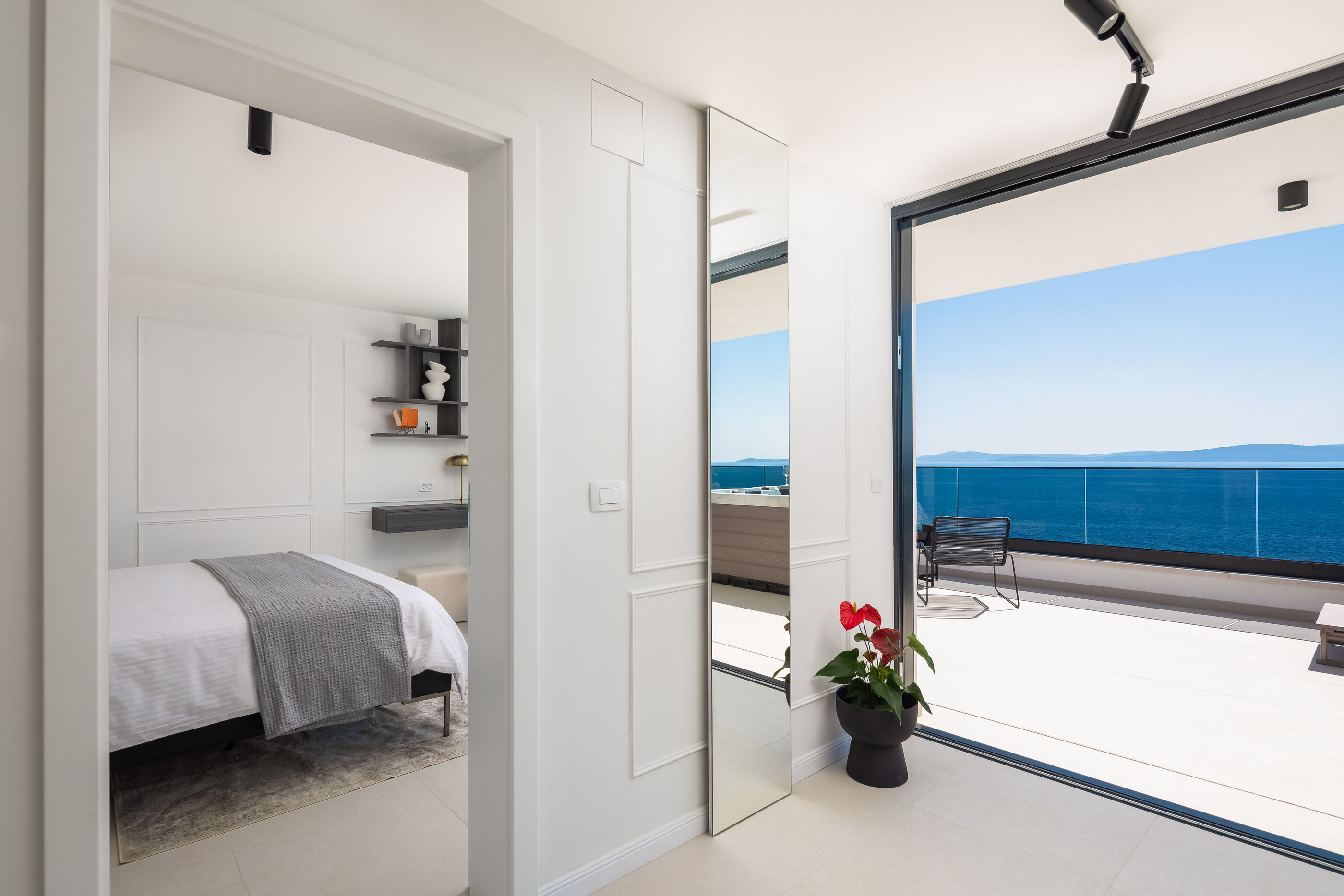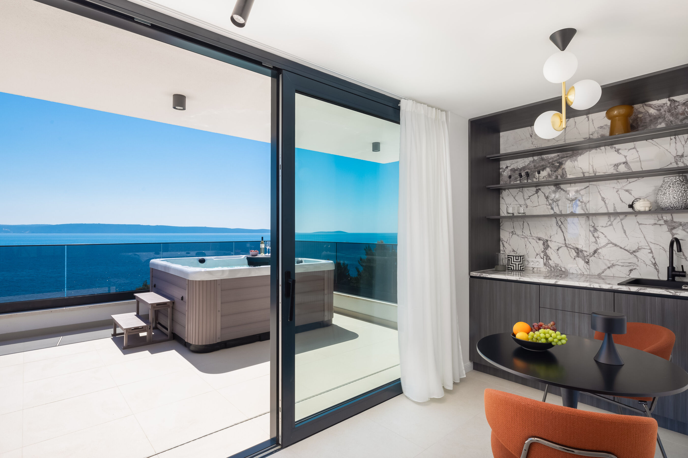 Uživajte u kristalno čistom moru i dugim zalascima na betonske ploče plaži, udaljenoj 100 m. Za one koji preferiraju privatnost, uronite u Vanjski bazen i upijajte sunce cijeli dan.