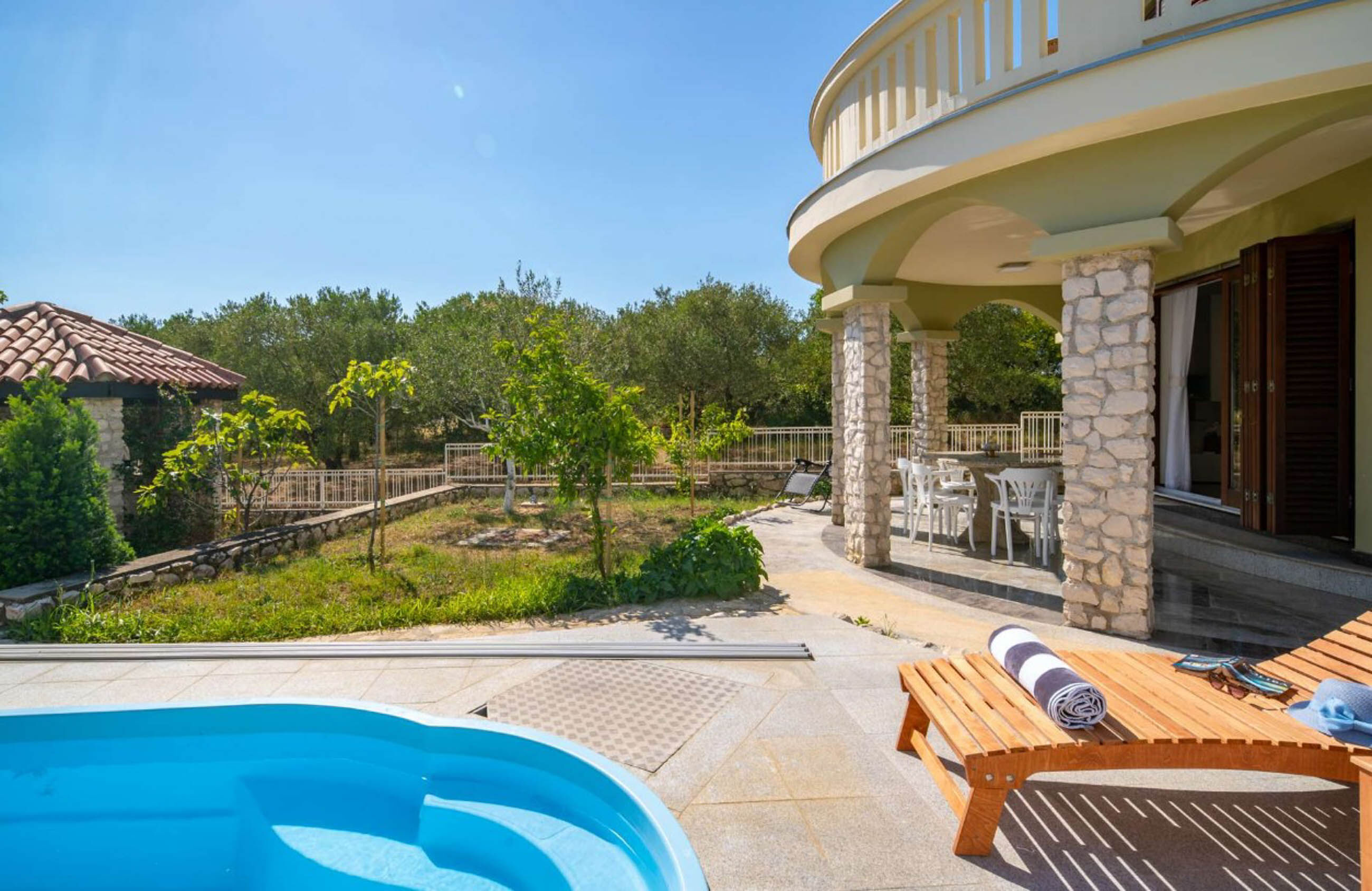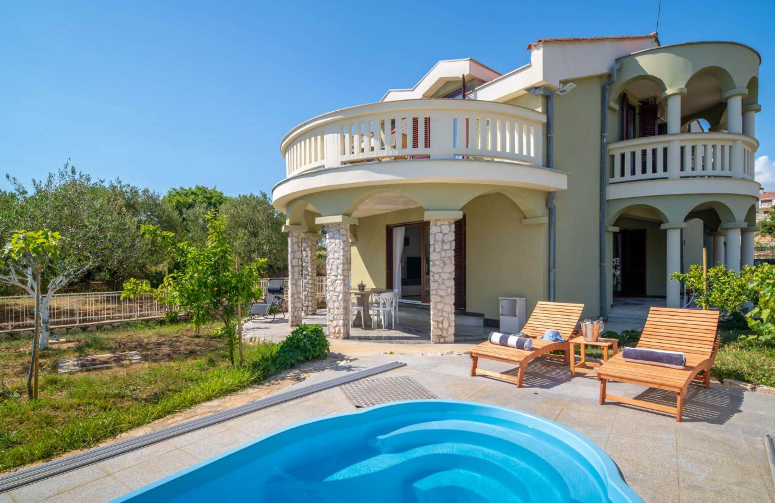 Uživajte u vrhunskom luksuzu uz obalu u vili Rita, smještenoj u šarmantnom mjestu Sv. Filip i Jakov. Samo 500 metara od centra grada i tek 700 metara od plaže Morovićka Turanj, vila Rita nudi zanosnu kombinaciju praktičnosti i mira. Ova izvrsna vila ima vanjski bazen opremljen ležaljkama, pružajući oazu mira usred ovog dalmatinskog mjesta.