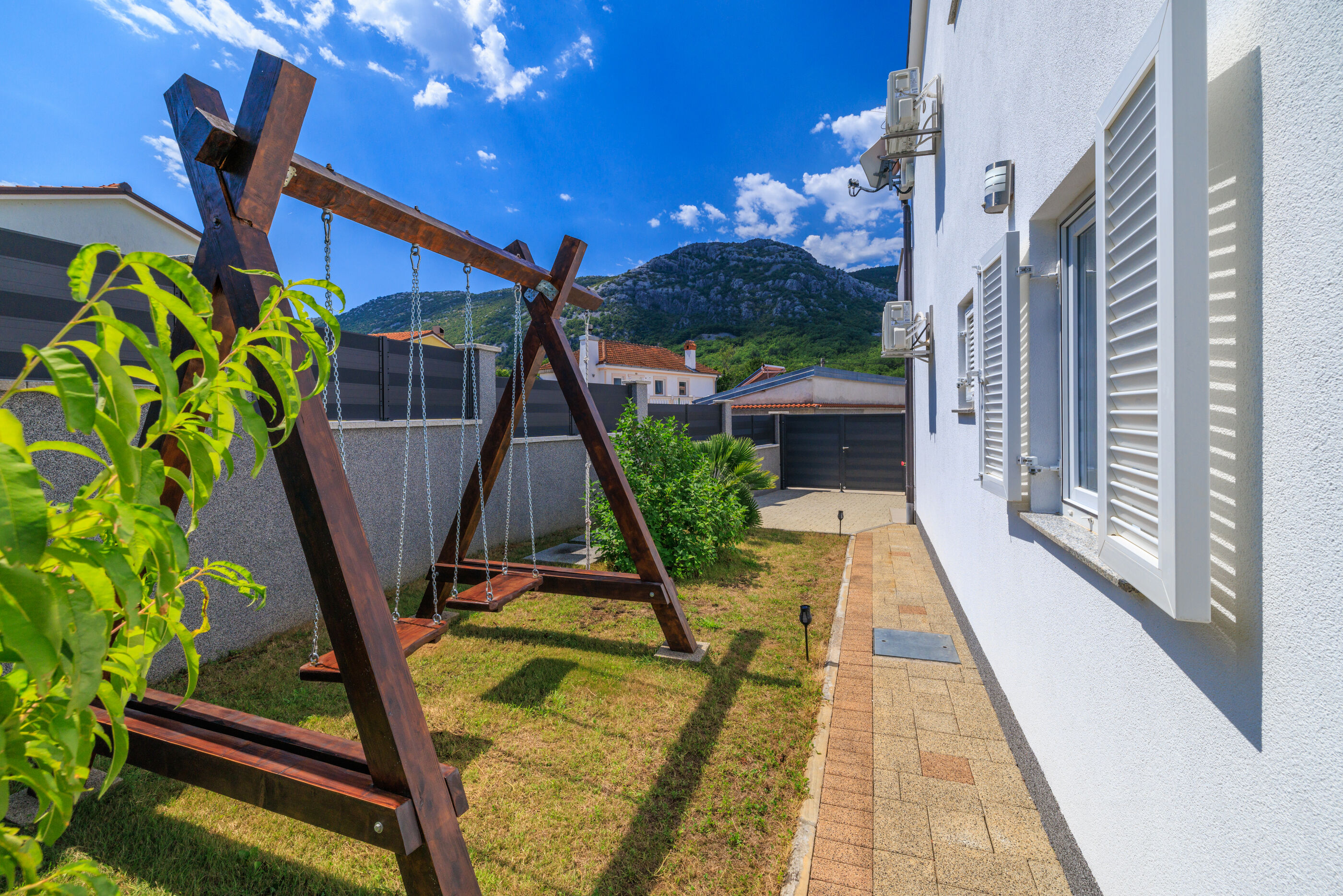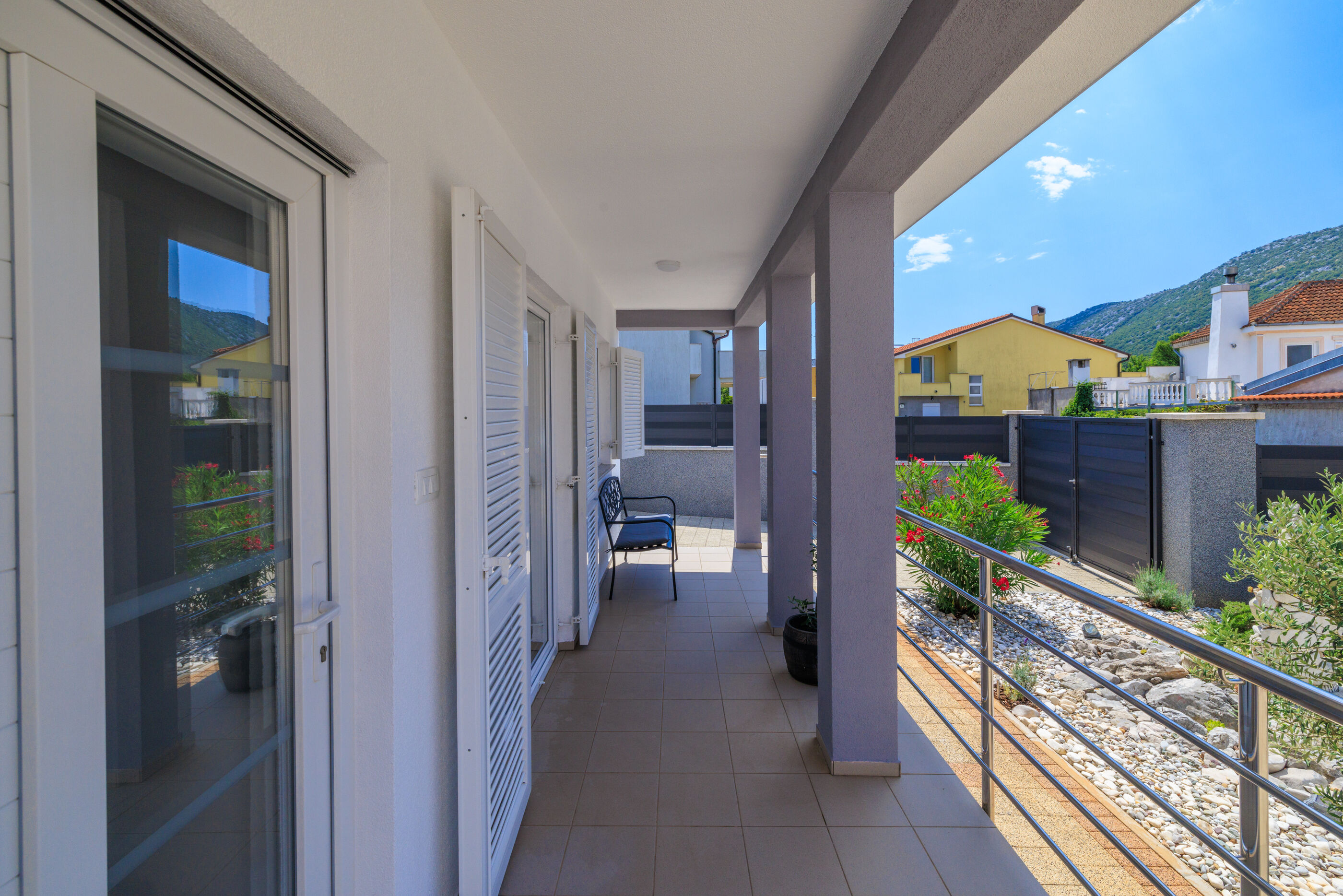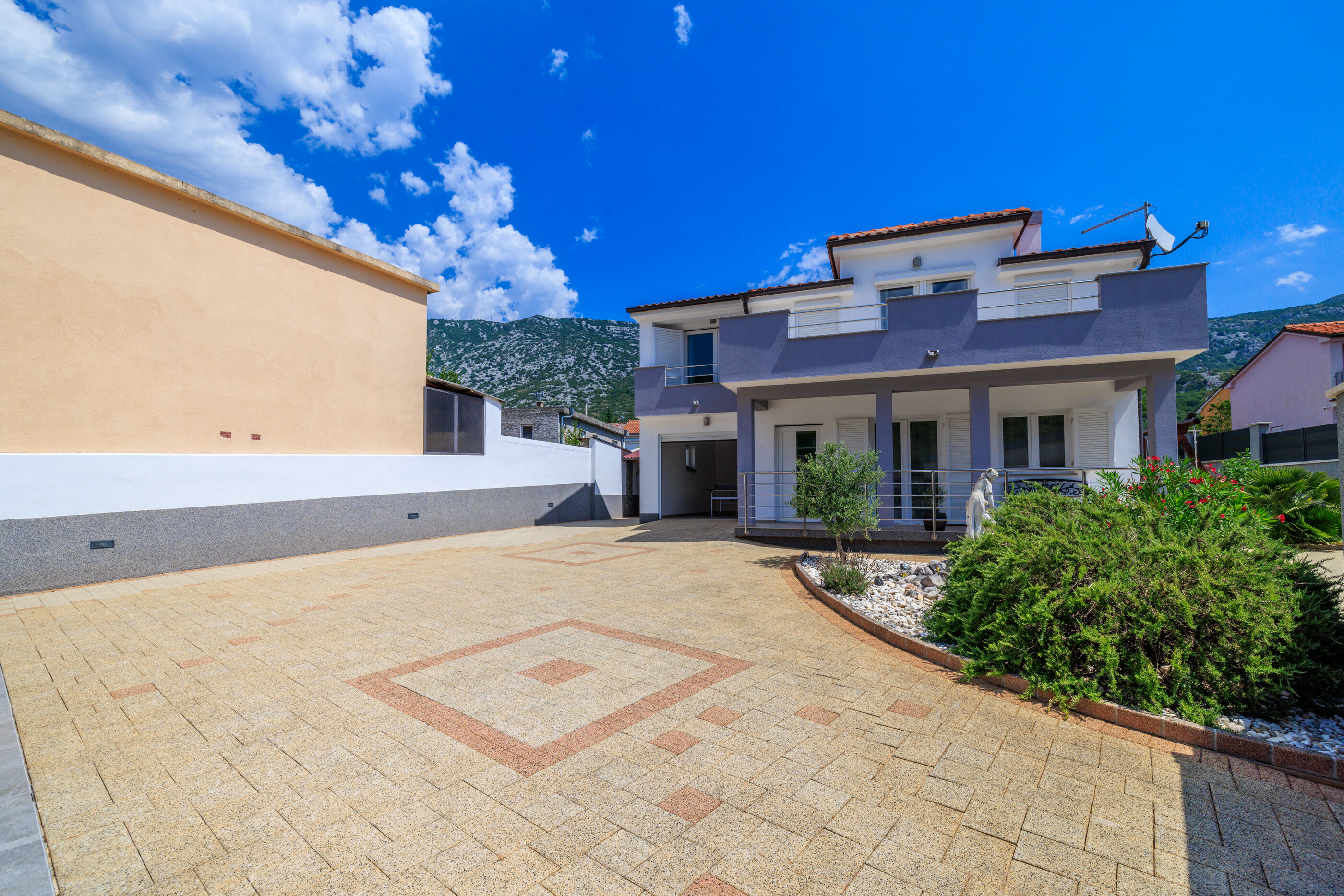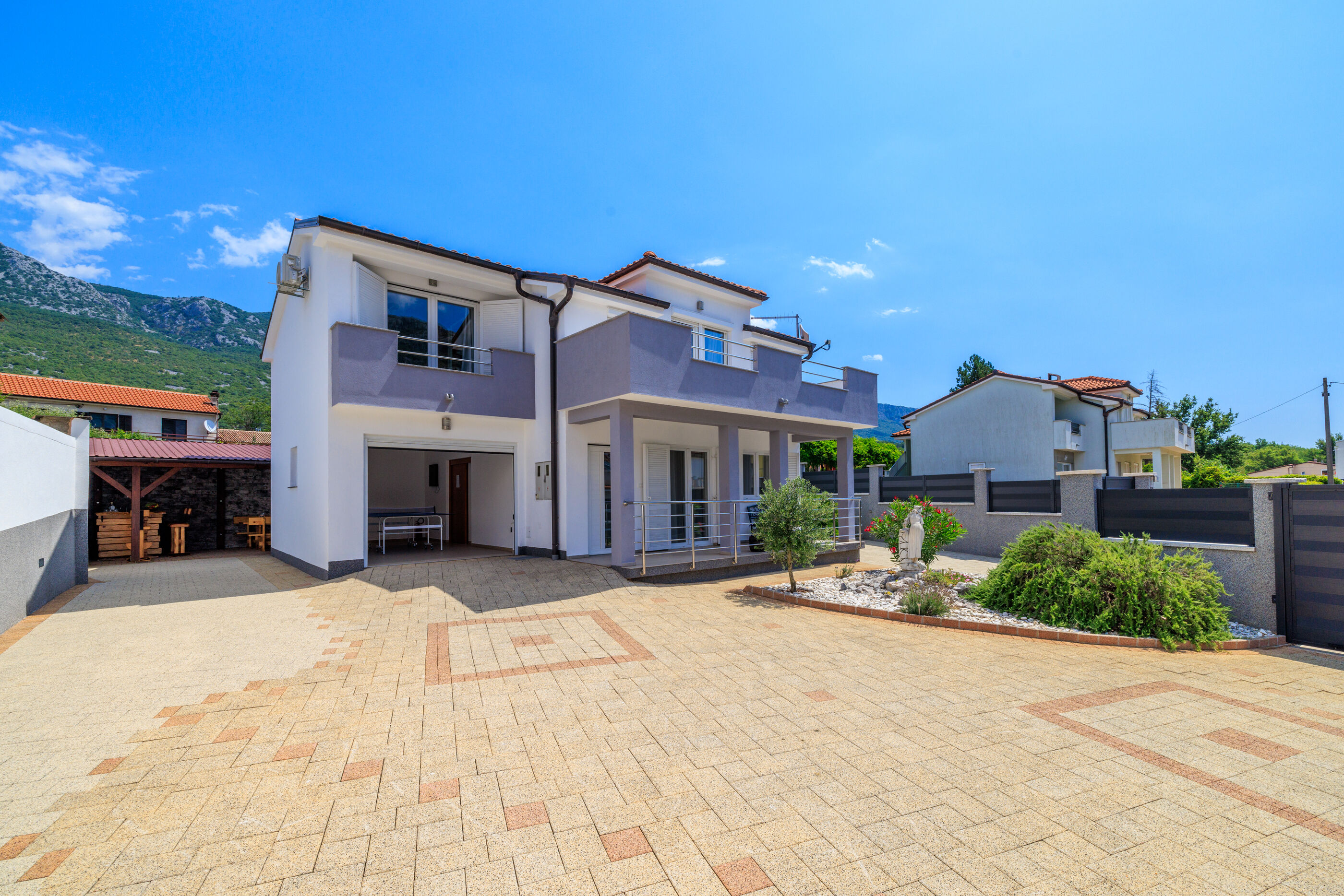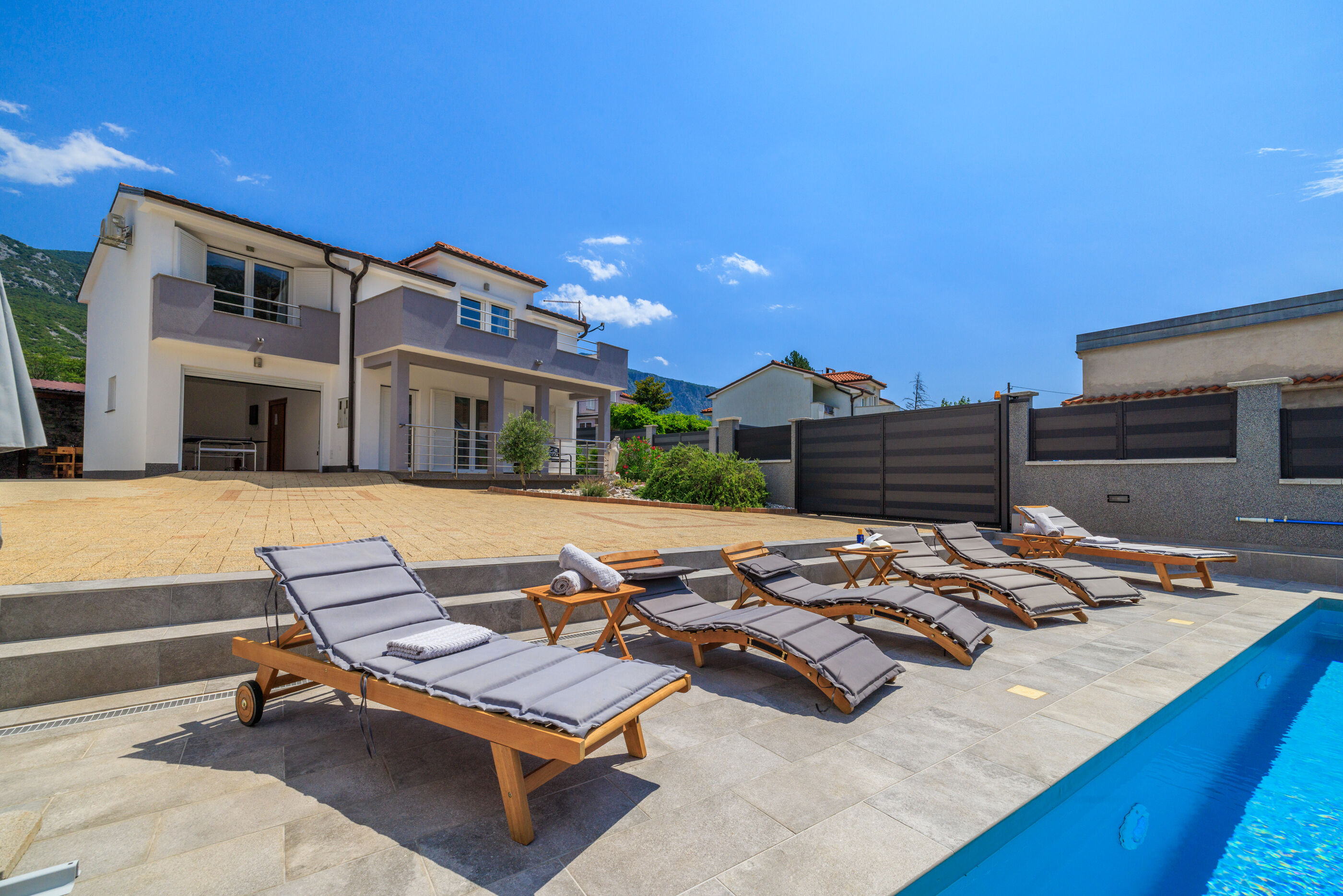 Nova i moderno uređena kuća sa bazenom nalazi se u mirnom mjestu Tribalj, nedaleko od grada Crikvenice, udaljenog cca 6 km.Kuća je pogodna za 5-6 osoba i idealna je za obitelji s djecom, a sastoji se od dvije etaže:Ulaz je u prizemlju gdje se nalaze kupaonica, kuhinja s blagovaonicom, dnevni boravak te još jedan zasebni wc. Prizemlje je klimatizirano. Unutarnje stubište vodi na prvi kat gdje se nalazi kupaonica sa kadom, tri spavaće sobe, dvije dvokrevetne, od kojih jedna ima pomoćni ležaj na kauču ( adekvatan za dijete), svaka sa izlazom na balkon sa pogledom na bazen te jedna jednokrevetna.