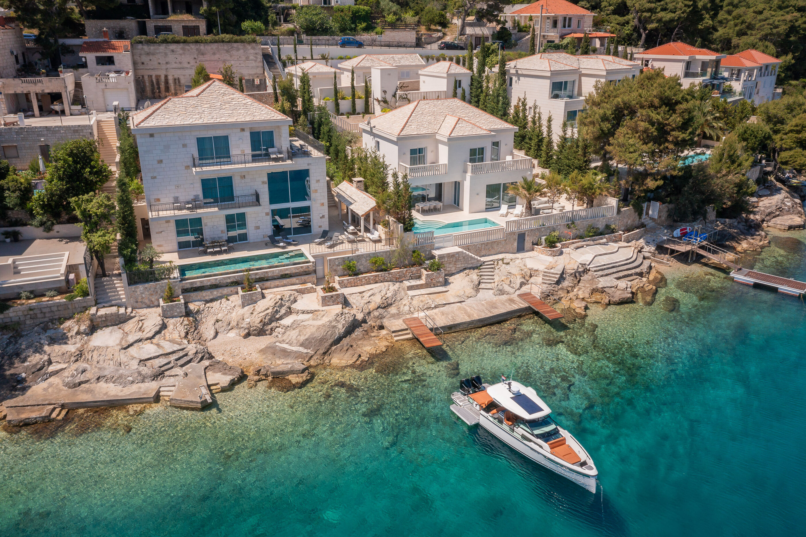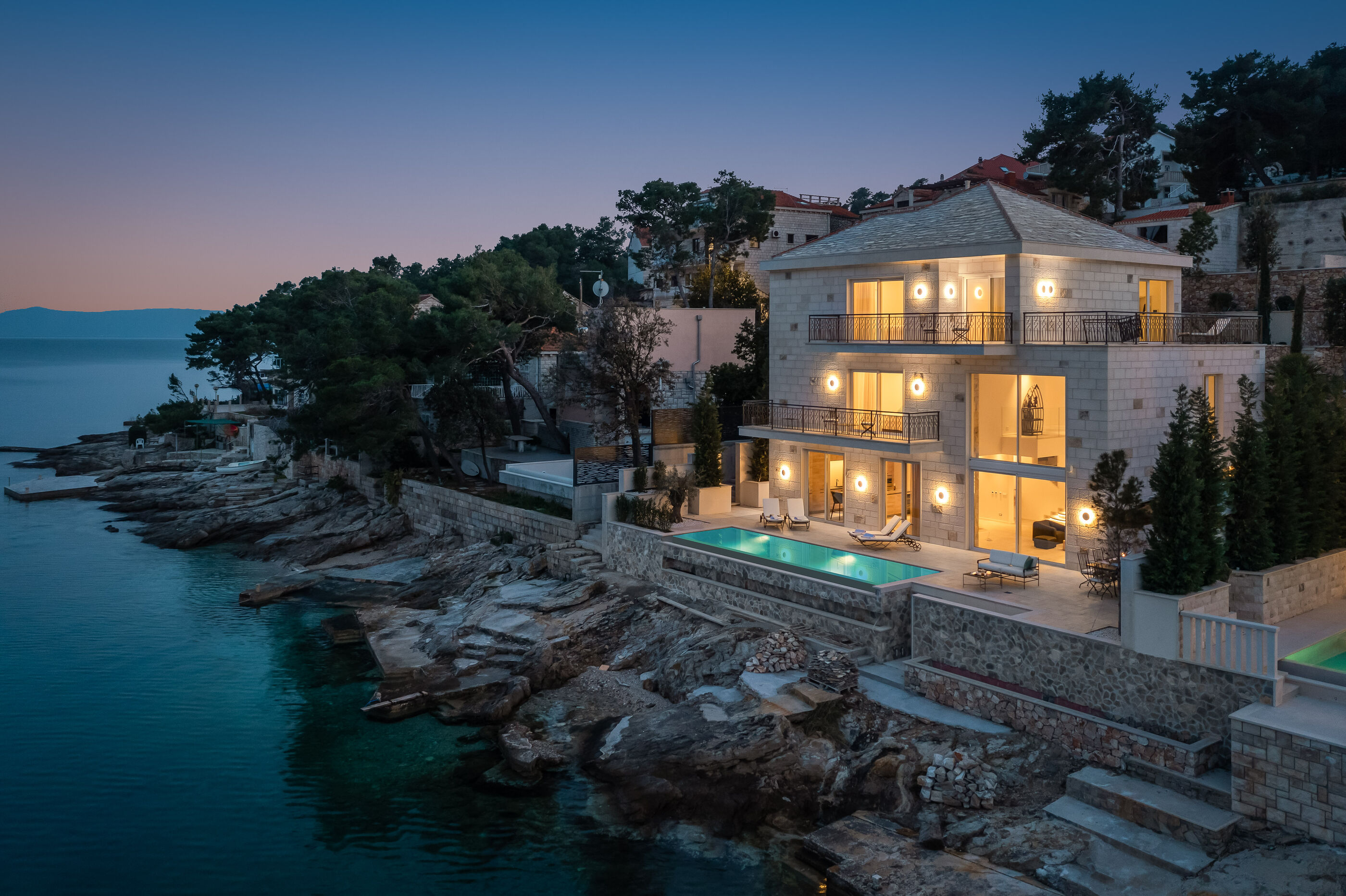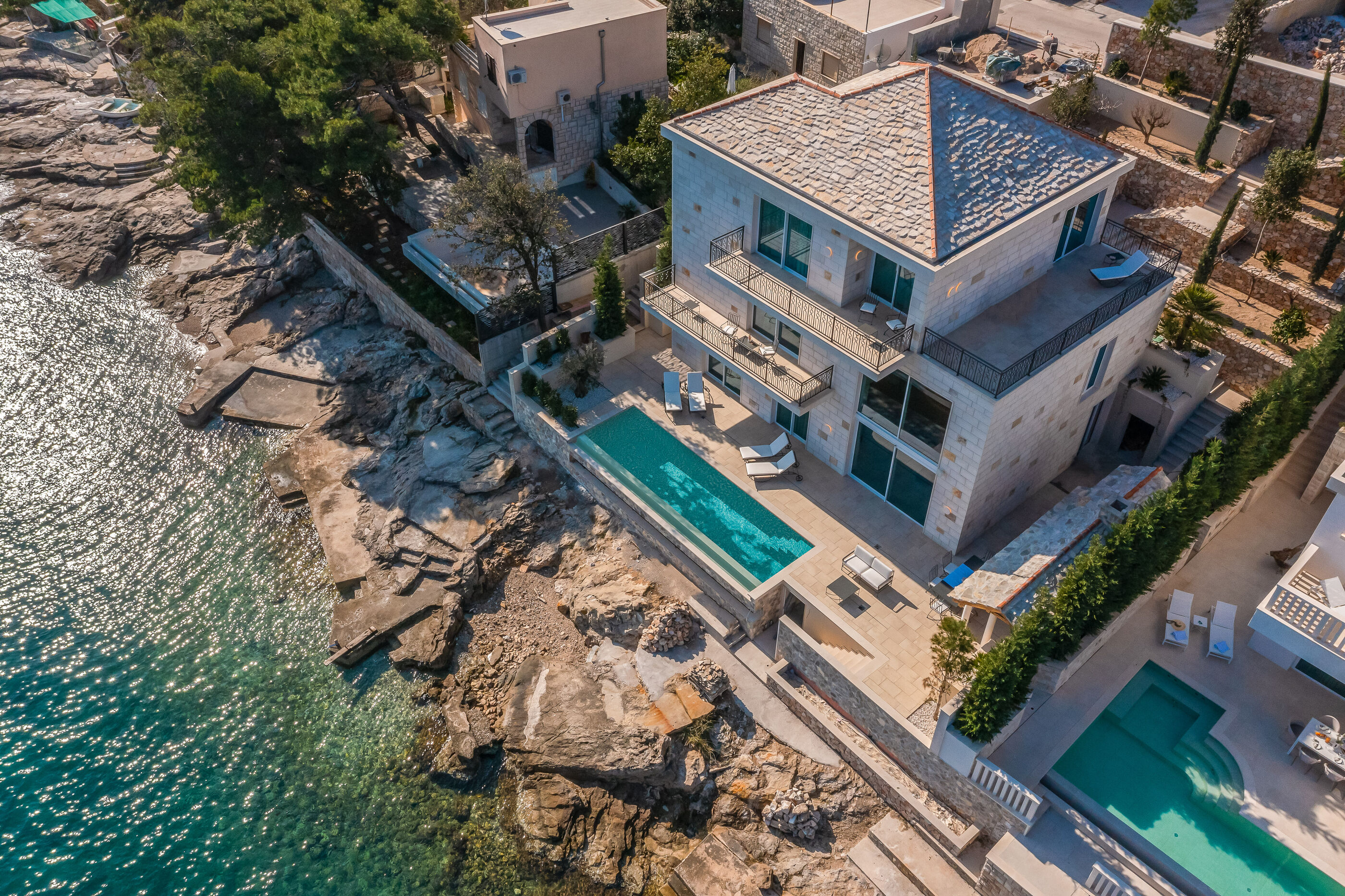 Uživajte u kristalno čistom moru i dugim zalascima na stjenovita i betonske ploče plaži, udaljenoj 10 m. Za one koji preferiraju privatnost, uronite u Vanjski bazen i upijajte sunce cijeli dan.
