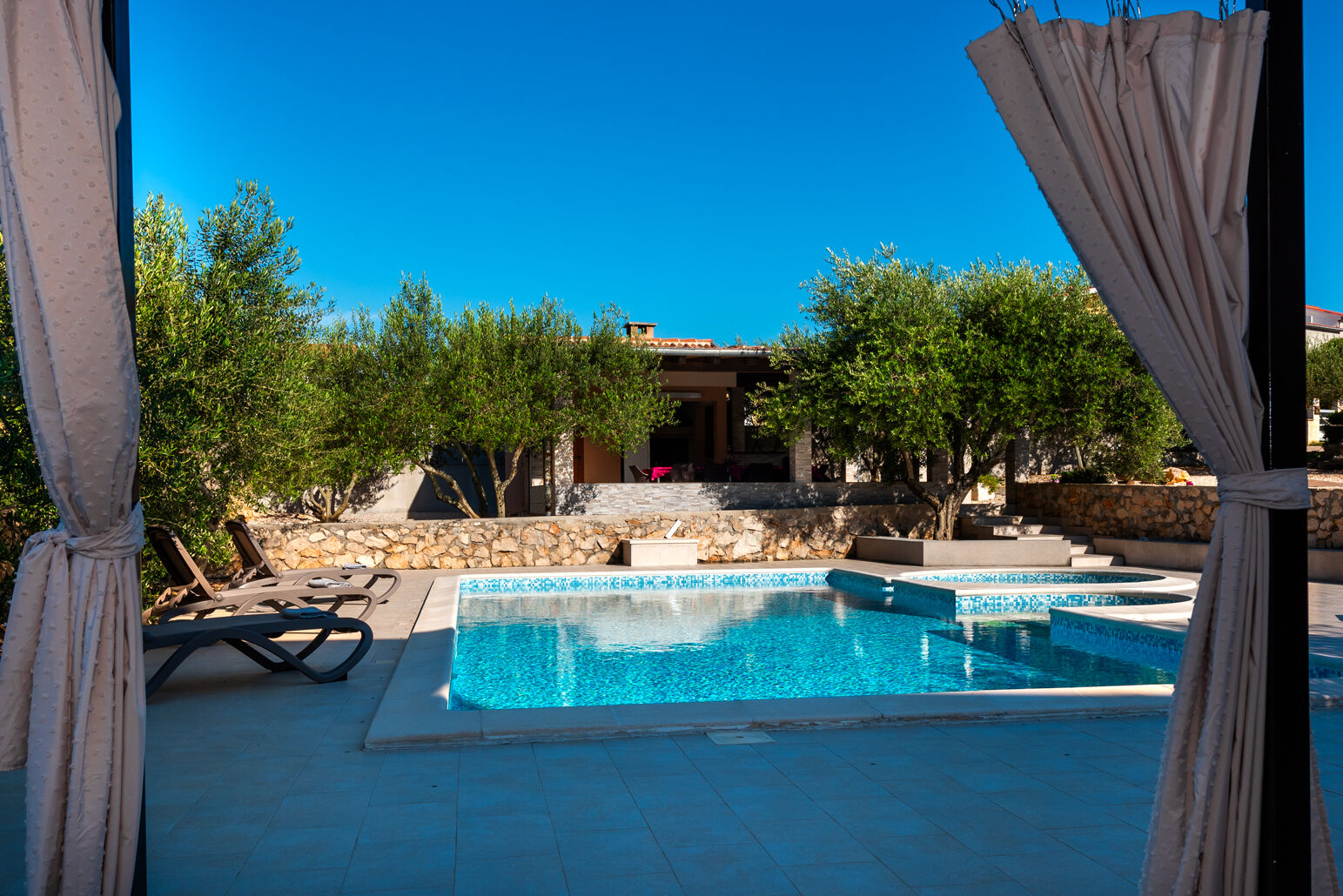 - Napomena: Vila Zlatni Dvori se nalazi u mirnom mjestu zvanom Ražanac i idealna je za obiteljski odmor. Grupe mladih nisu dozvoljene. Na raspolaganju vam stoje velik privatan bazen s plićim dijelom za djecu i velika natkrivena terasa s roštiljem. Vila raspolaže i sa dječjim igralištem. Prizemlje se sastoji od prostranog dnevnog boravka, blagovaonice, potpuno opremljene kuhinje, tri spavaće sobe i jedne kupaonice. Uz glavni objekt se se nalazi i pomoćni objekt koji se sastoji od 2 spavaće sobe, kupaonice, dnevnog boravka s blagovaonicom i kuhinjom.